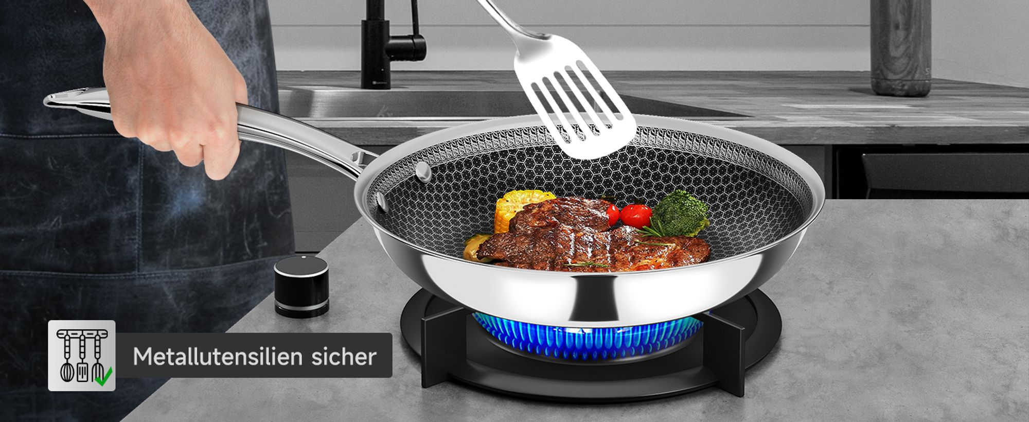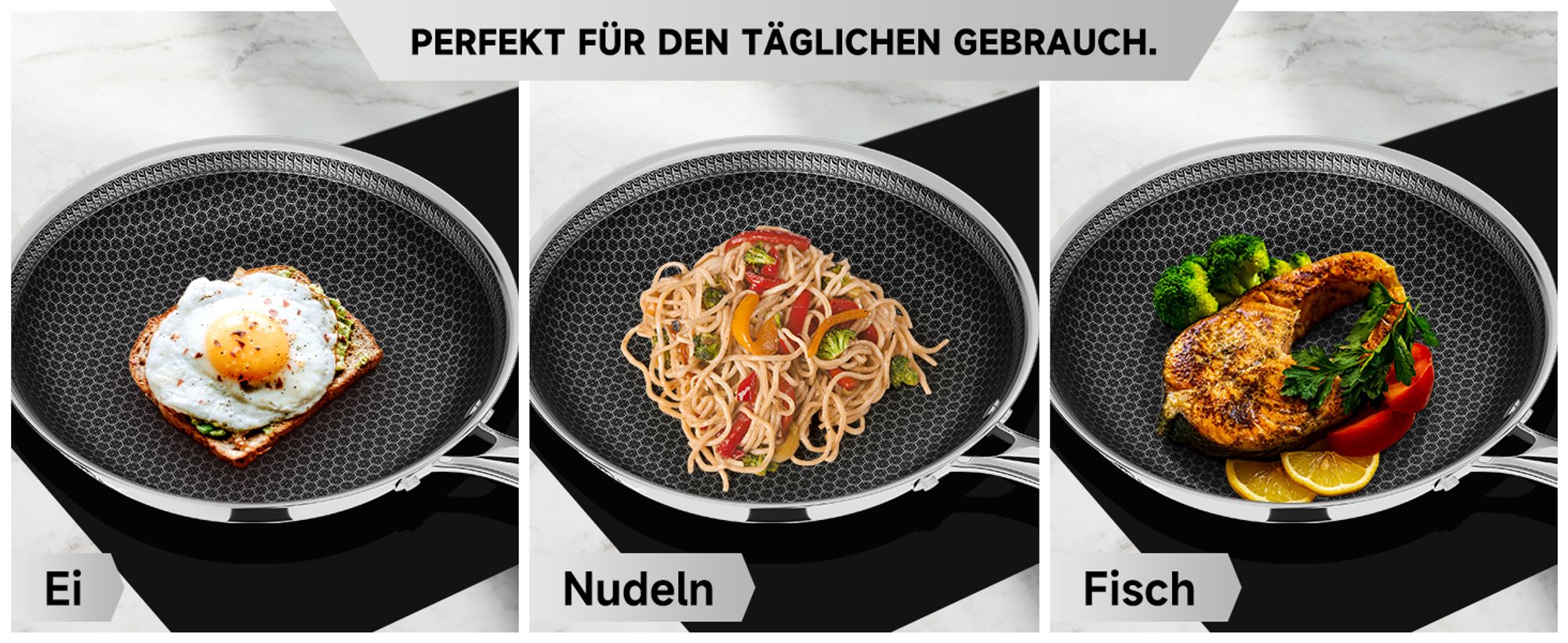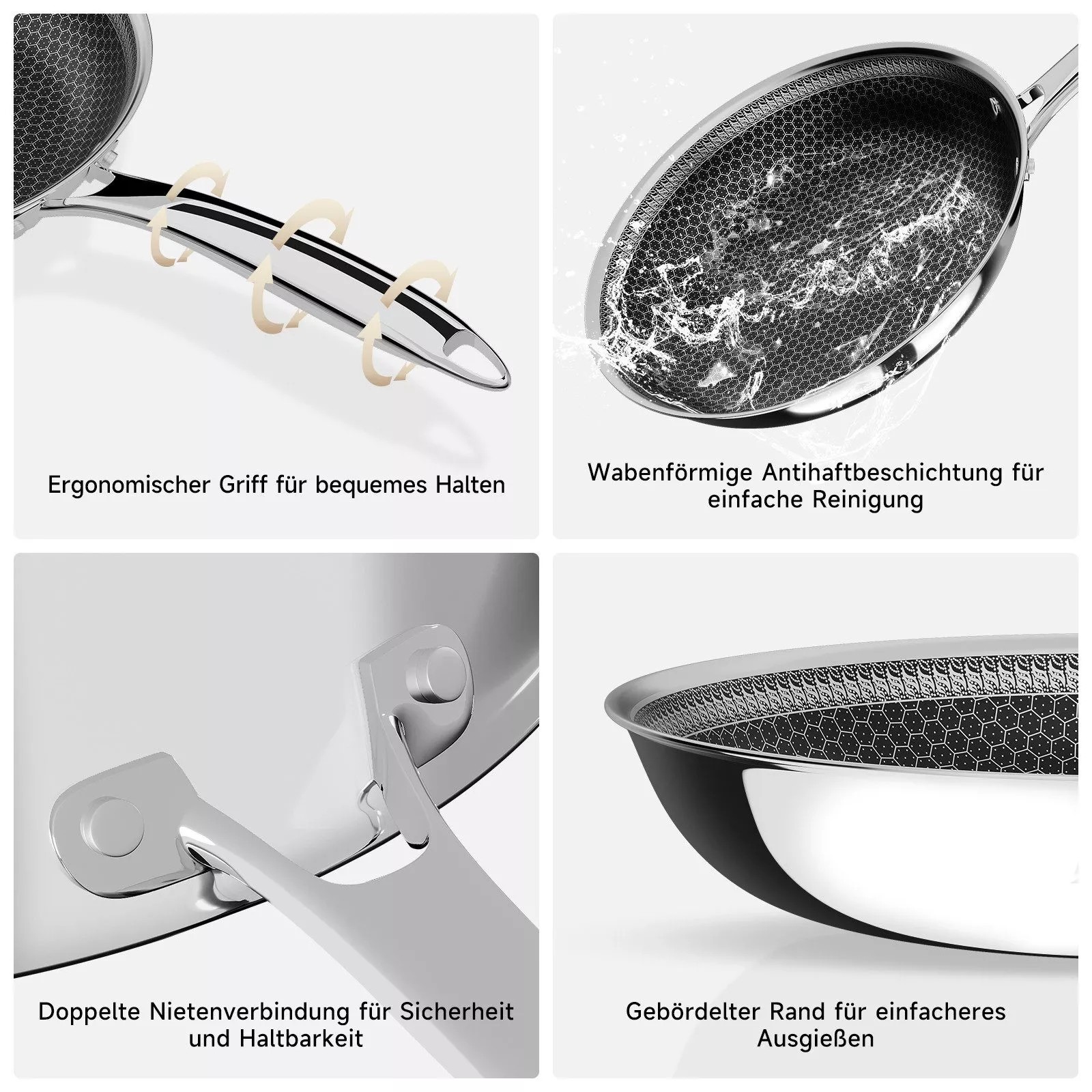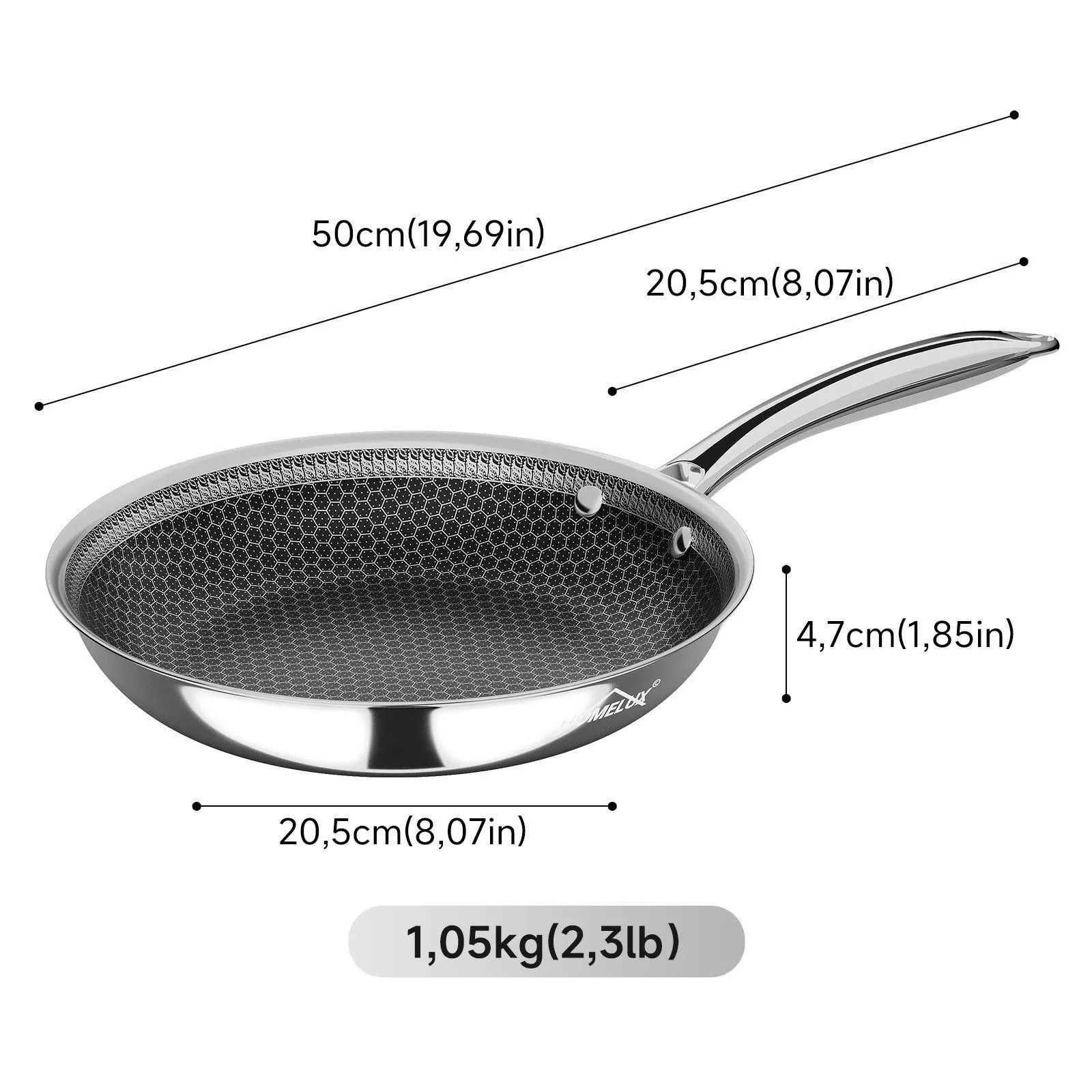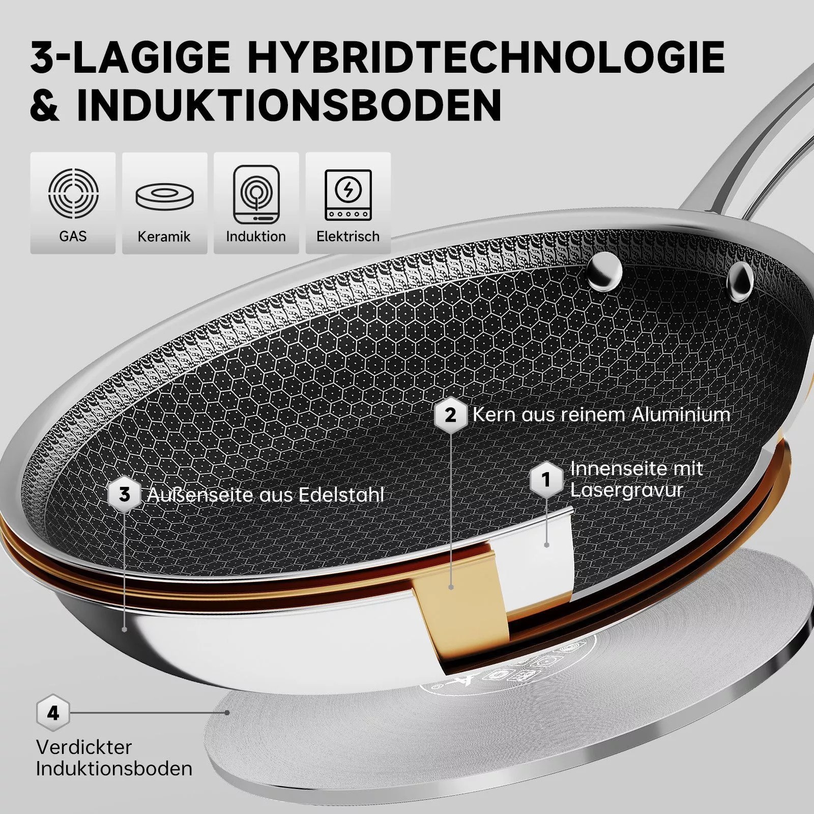 Frying pan induction stainless steel honeycomb structure 24/28 cm pan non-stick scratch-resistant