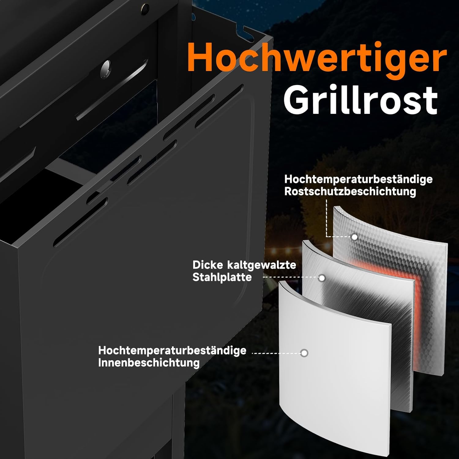 The gas barbecue is made of reinforced cold-rolled steel, has a stainless steel grill and a stainless steel burner head and is very suitable for outdoor use!