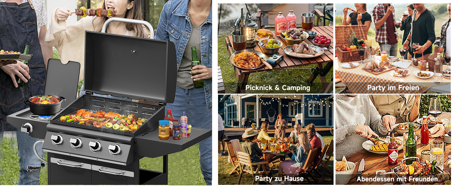 With dimensions of 136 x 107 x 41 cm, this BBQ gas barbecue is space-saving but generously equipped - ideal for families and friends.