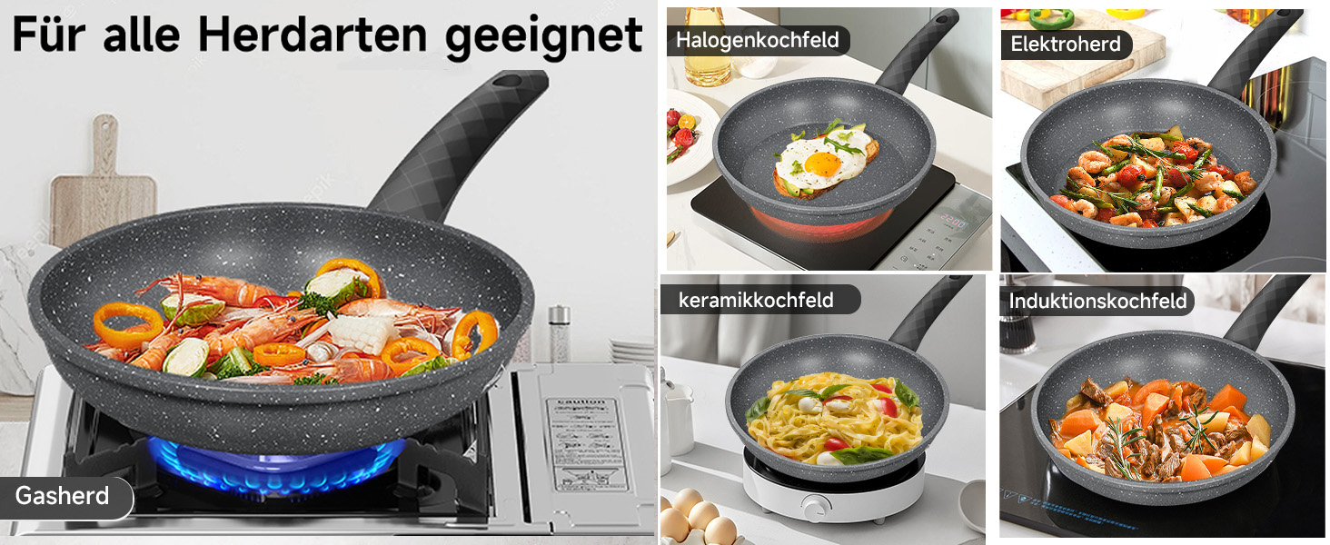 Whether induction, gas, electric, ceramic or halogen – this induction pan is compatible with all common types of stoves, maximum flexibility in everyday life. Note: Not suitable for use in the oven.