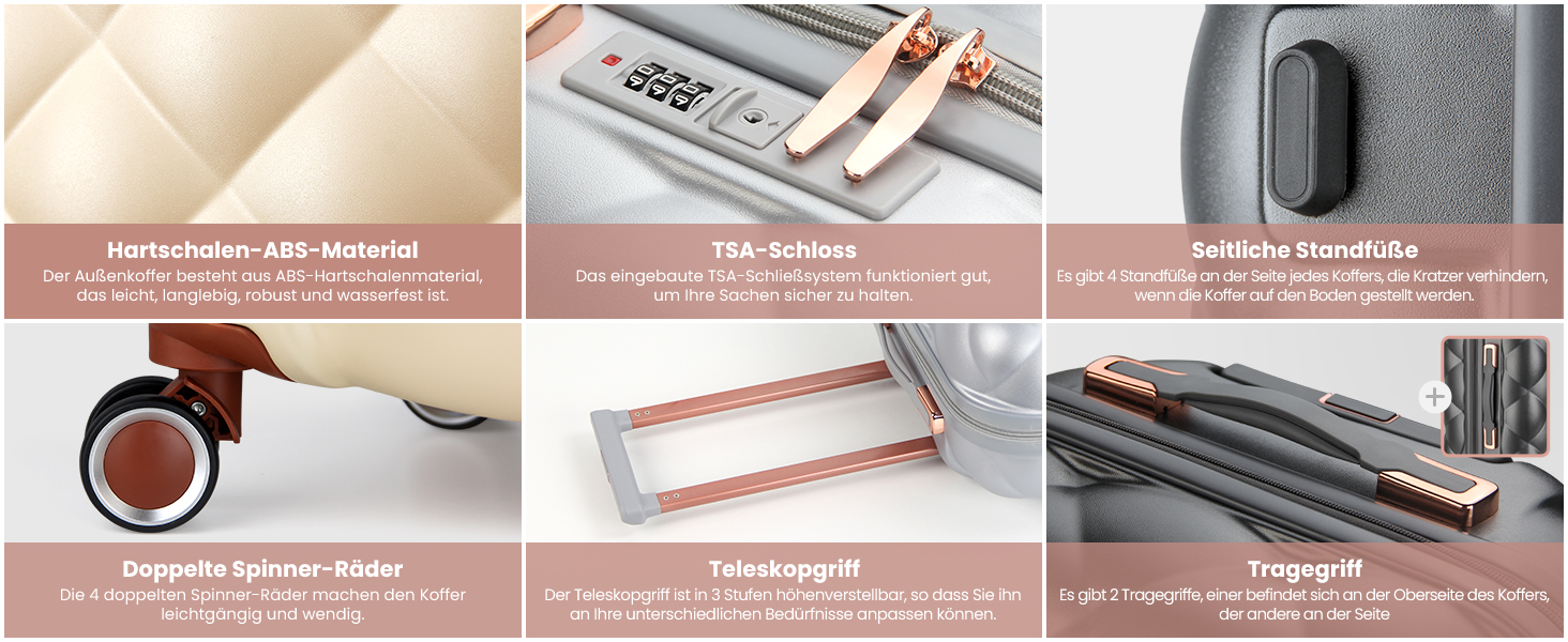 This hard-shell suitcase set made of high-quality ABS plastic is lightweight yet durable, offering your belongings excellent protection against bumps and rough handling.