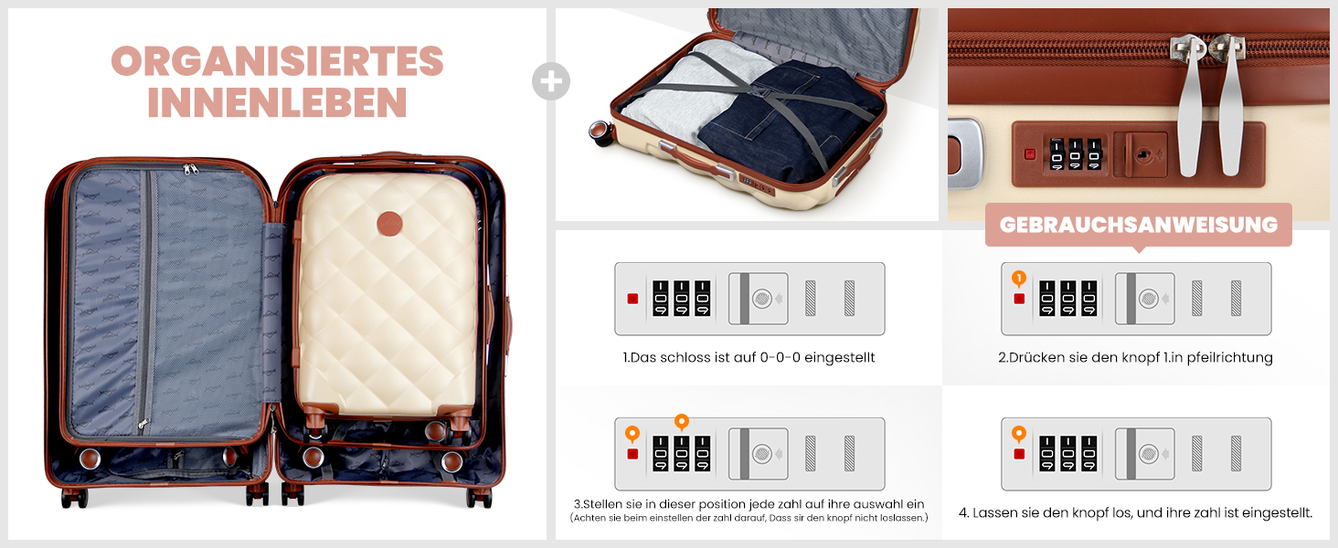 The side-mounted TSA lock allows only customs officers to inspect your luggage for customs clearance, and you can set any 3-digit password to ensure the security of your luggage.