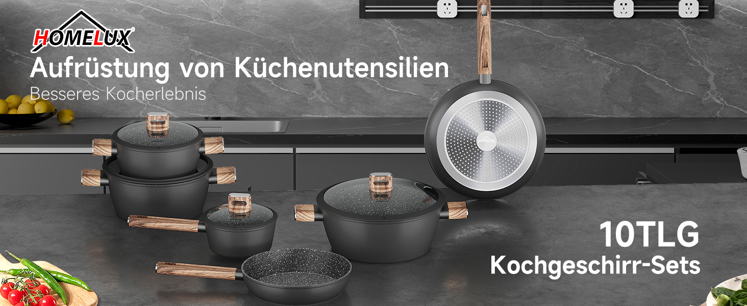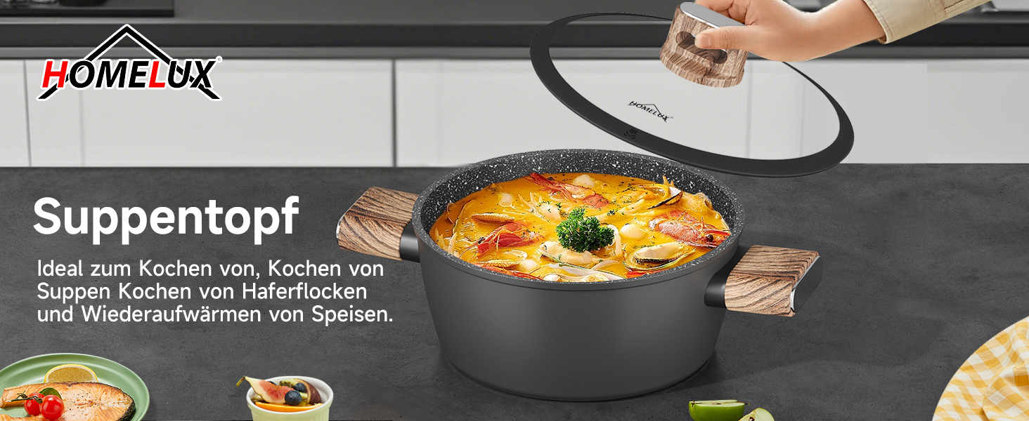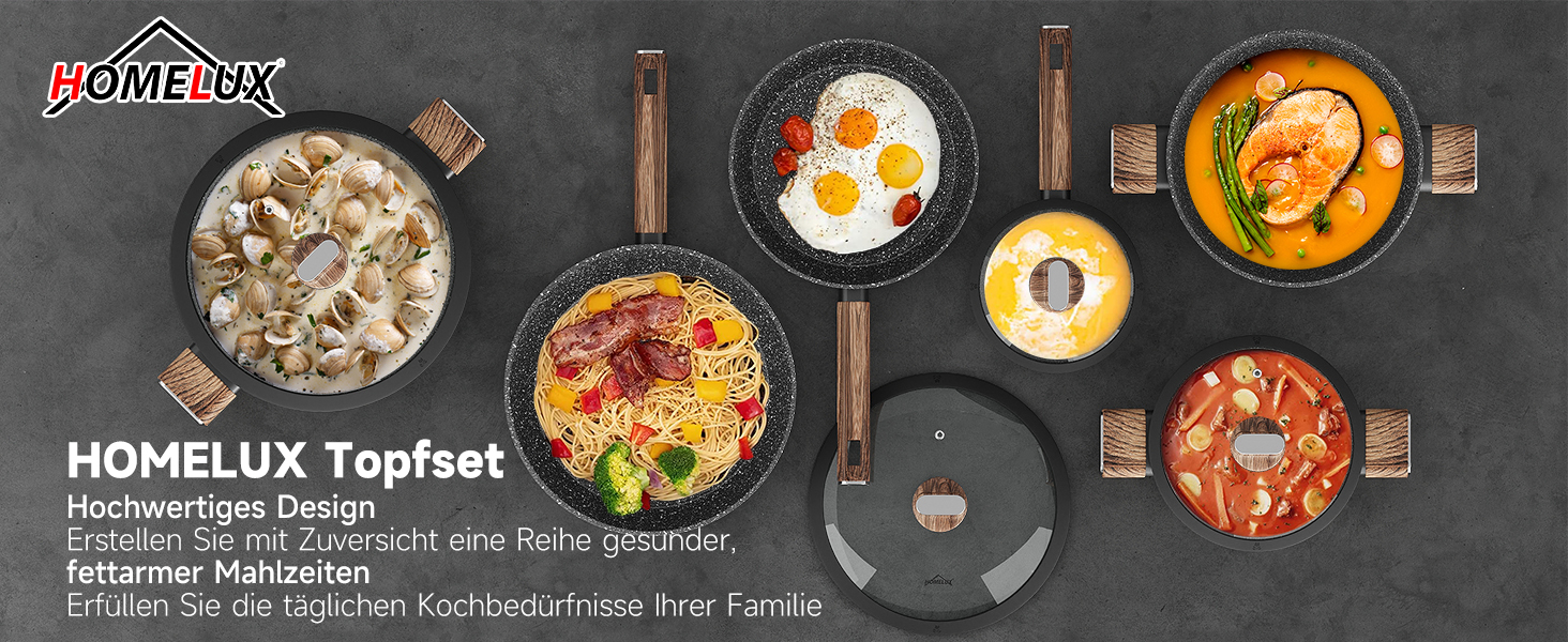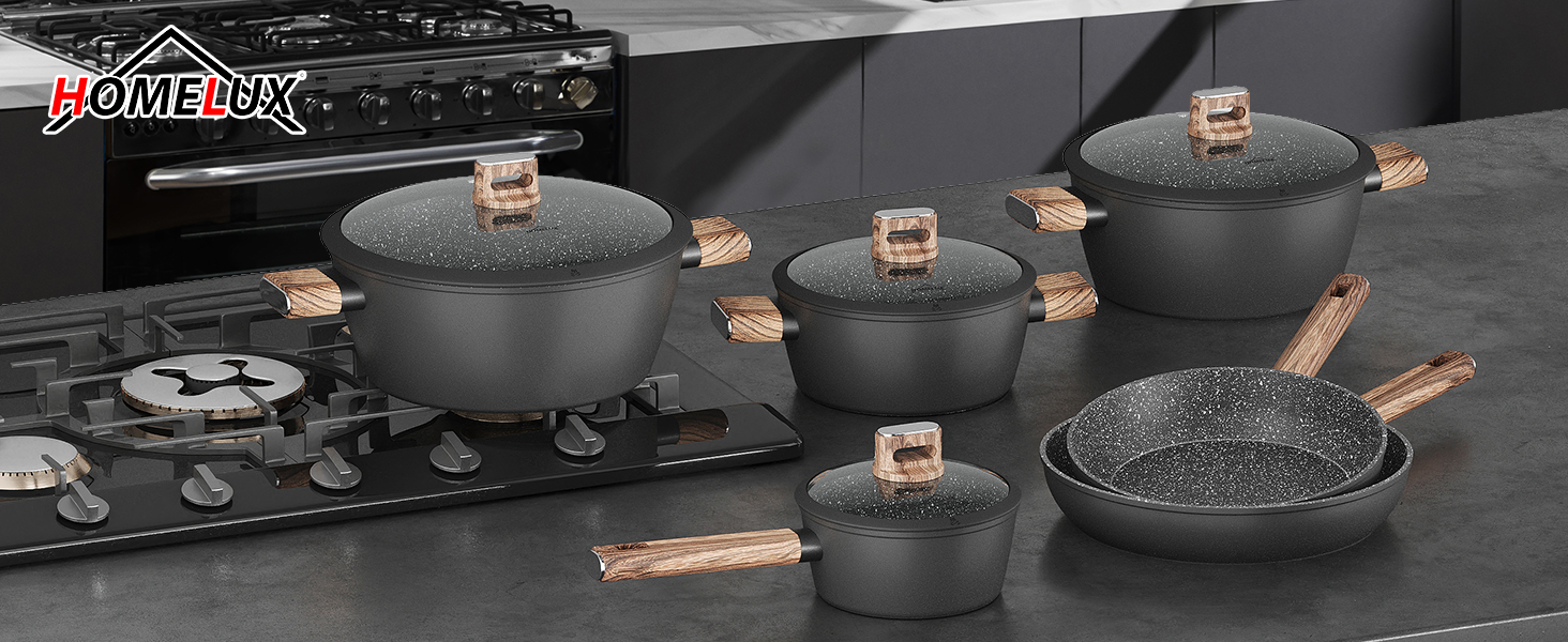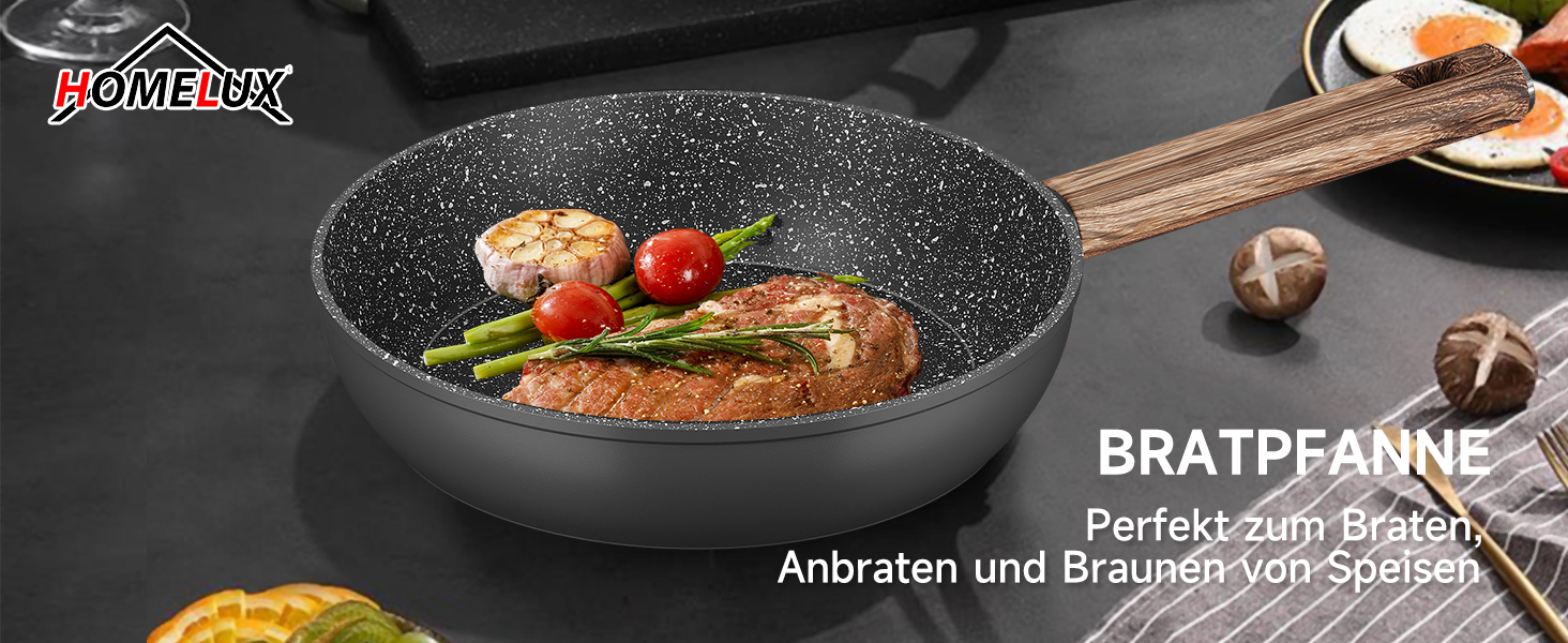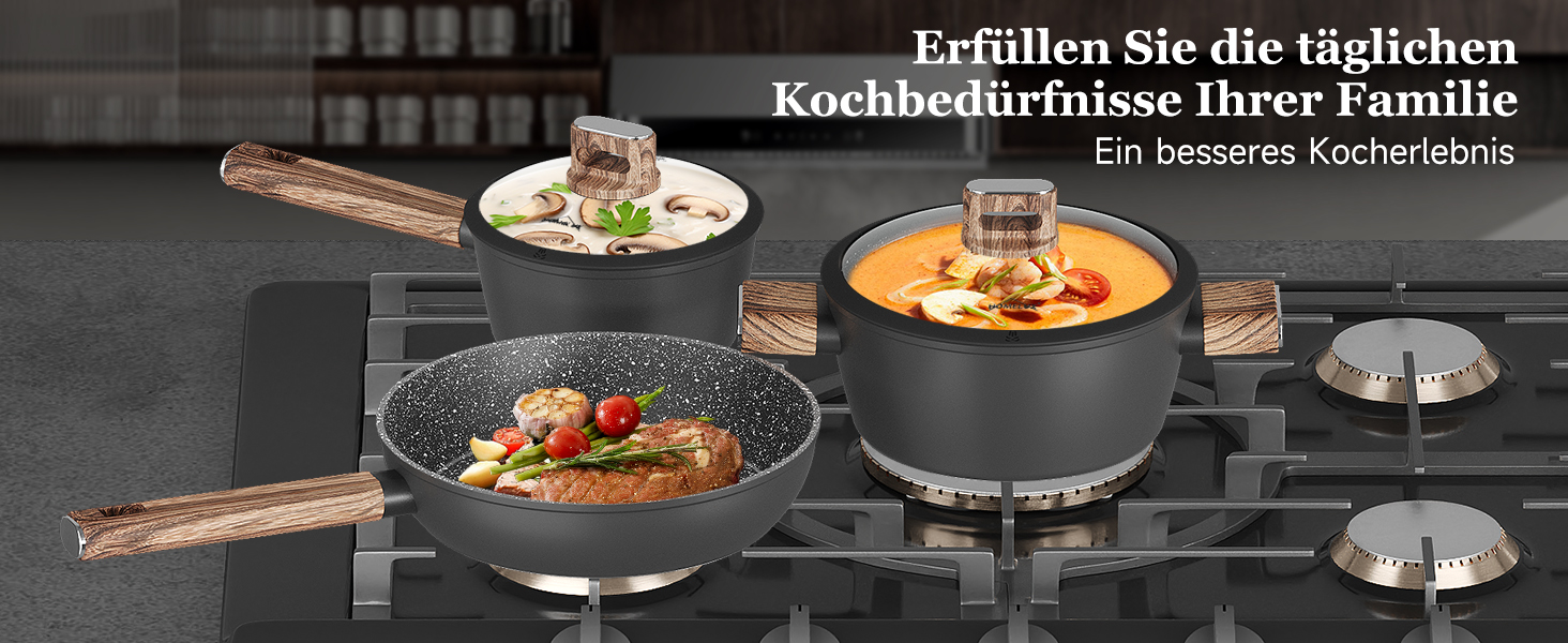 The surface of the pot and pan set with lid is made of a granite non-stick coating, 100% contains no harmful substances such as PFOA, lead and cadmium, ideal for healthy cooking.