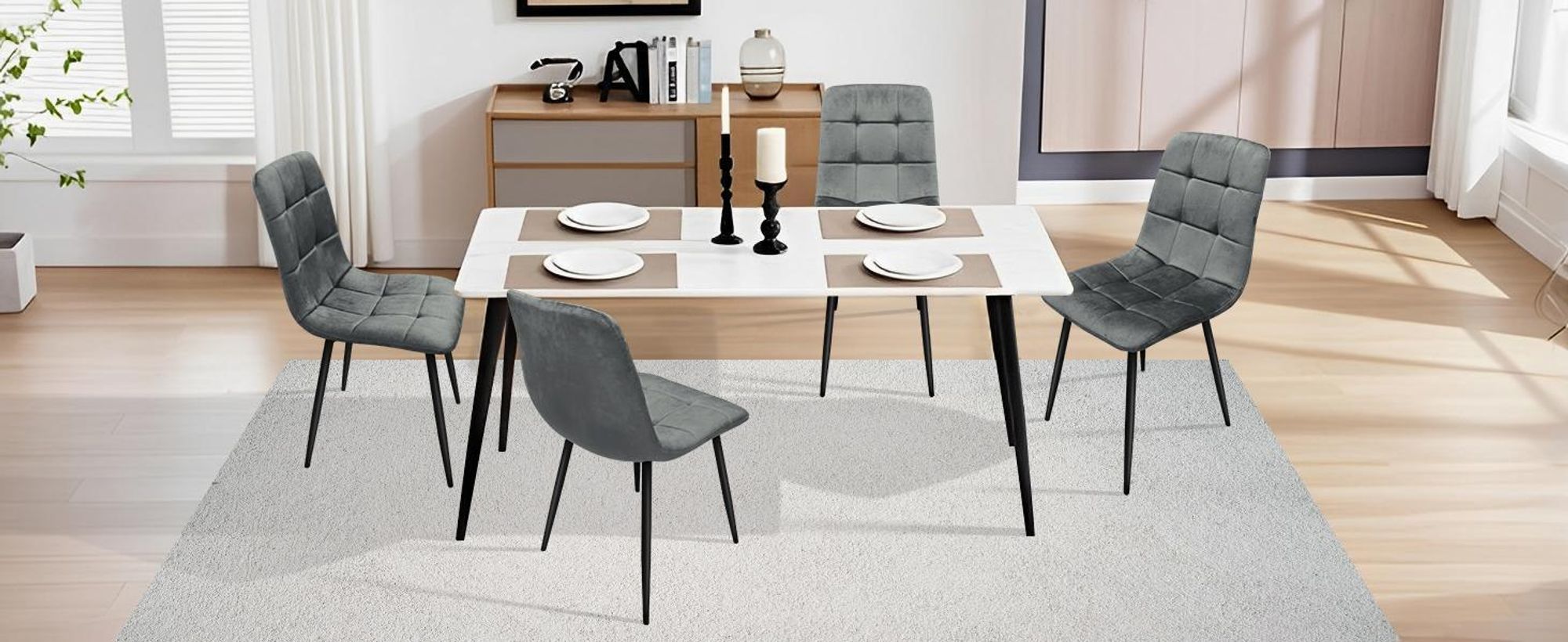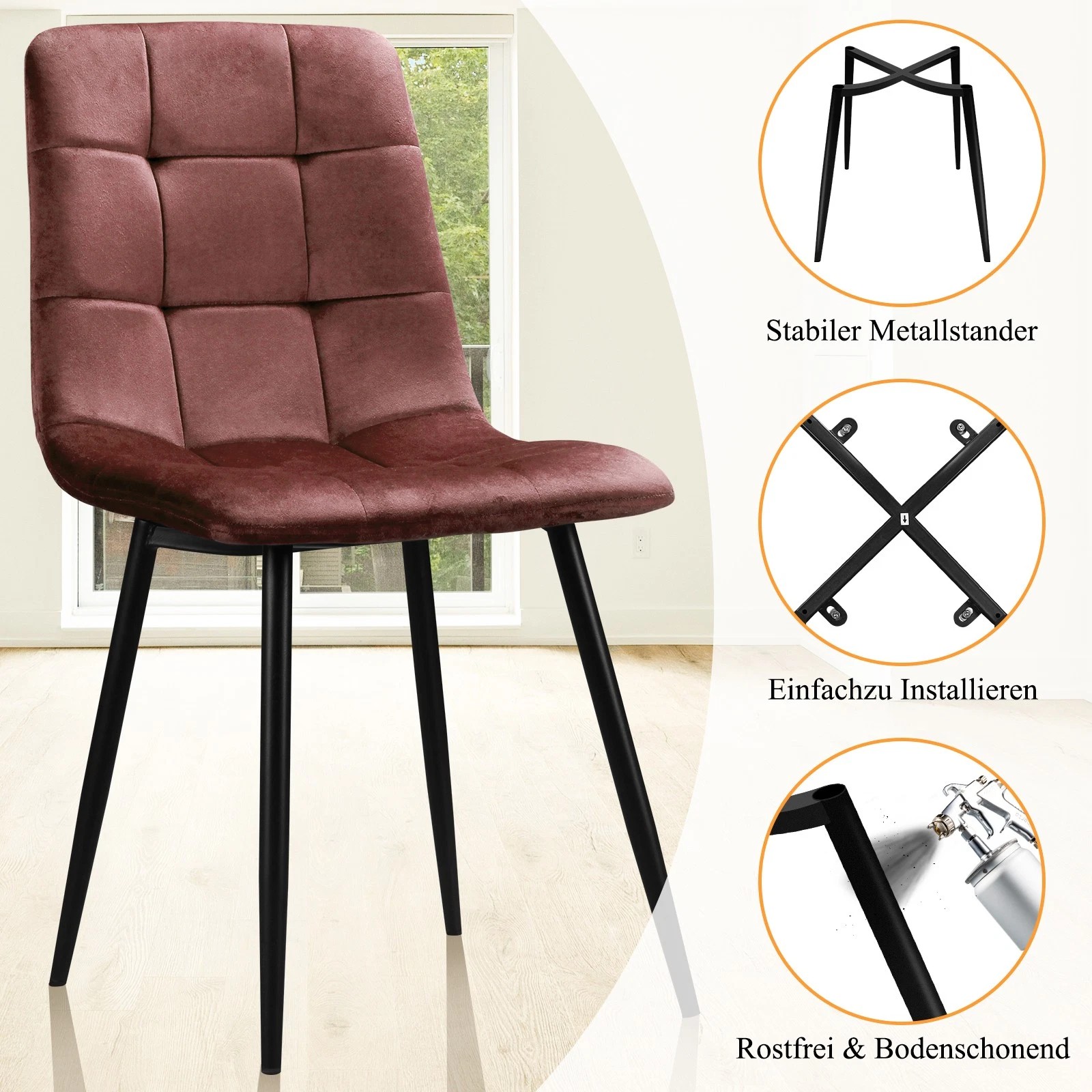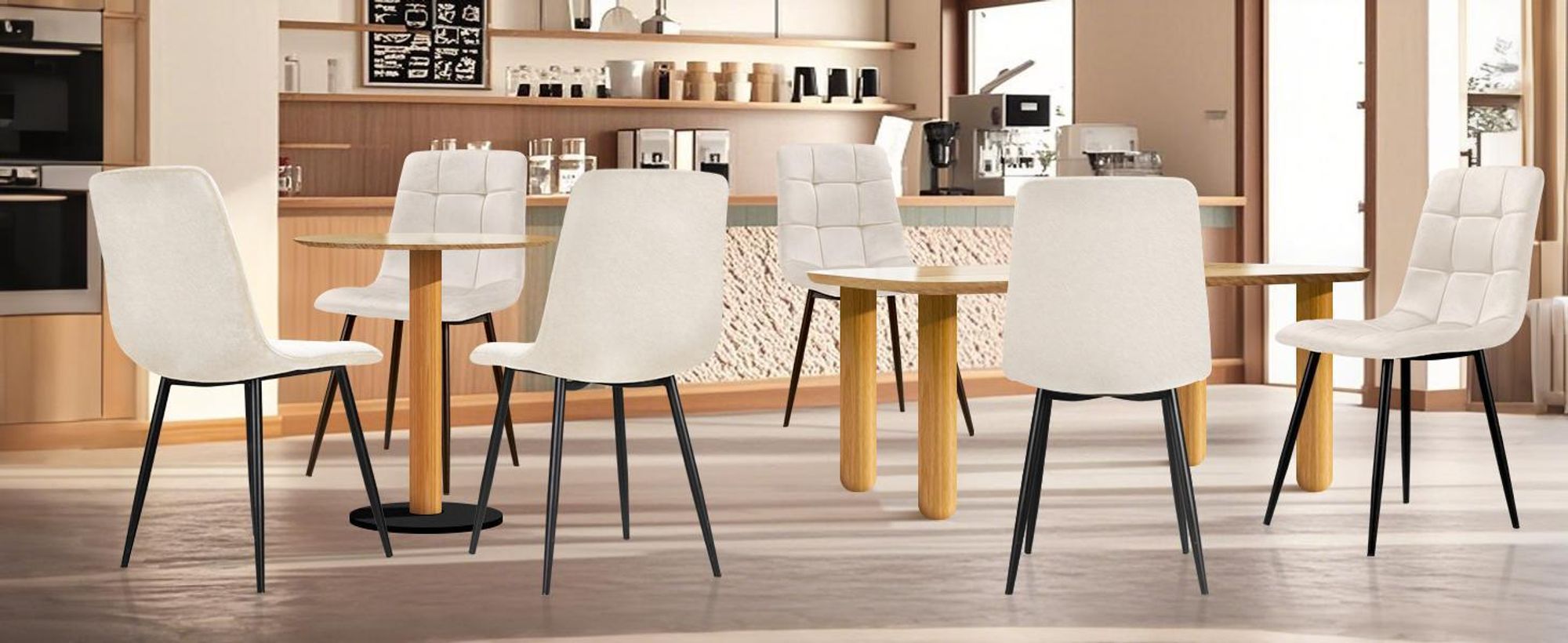 Choose from 5 elegant colors to seamlessly integrate these kitchen chairs into your home decor. Featuring a matte black metal frame and luxurious, soft-touch fabric, the minimalist design of these dining chairs complements any decor—from modern urban style to classic country style.