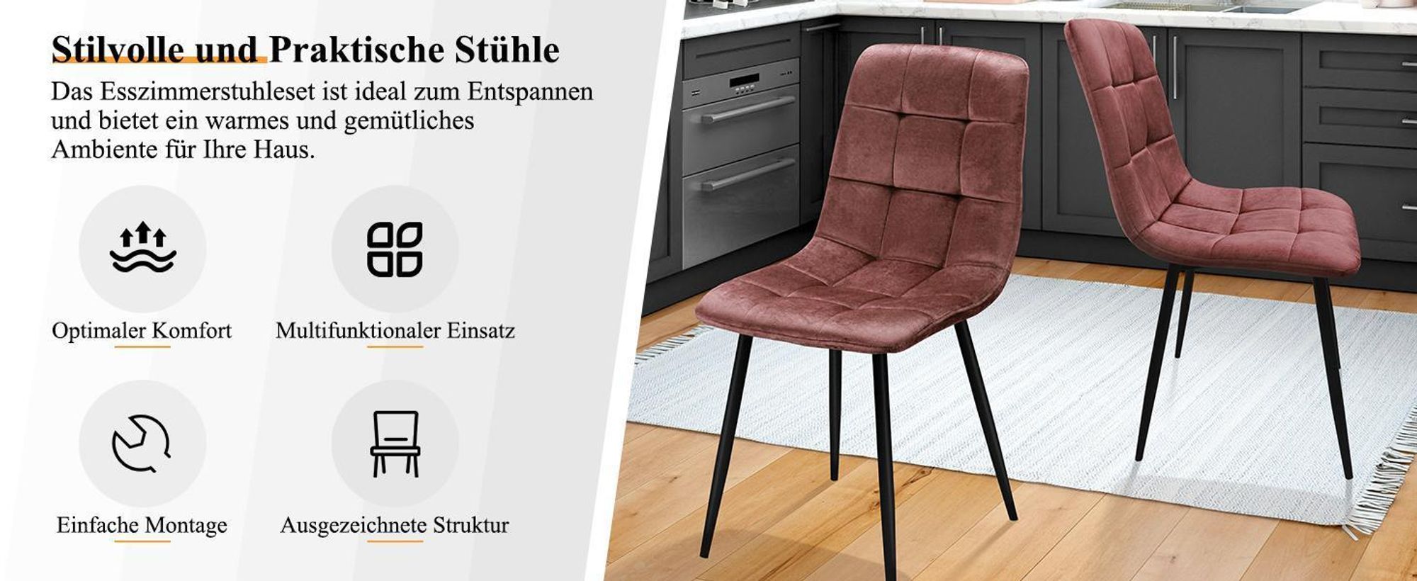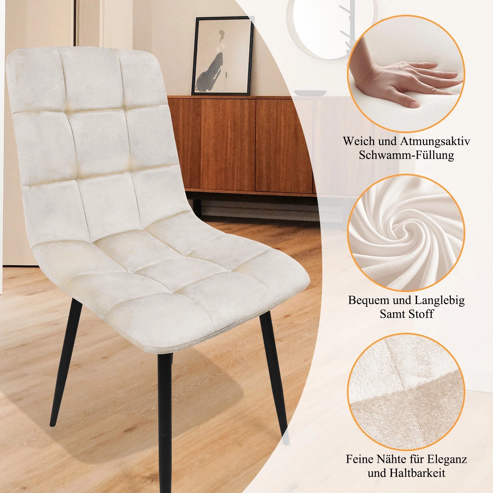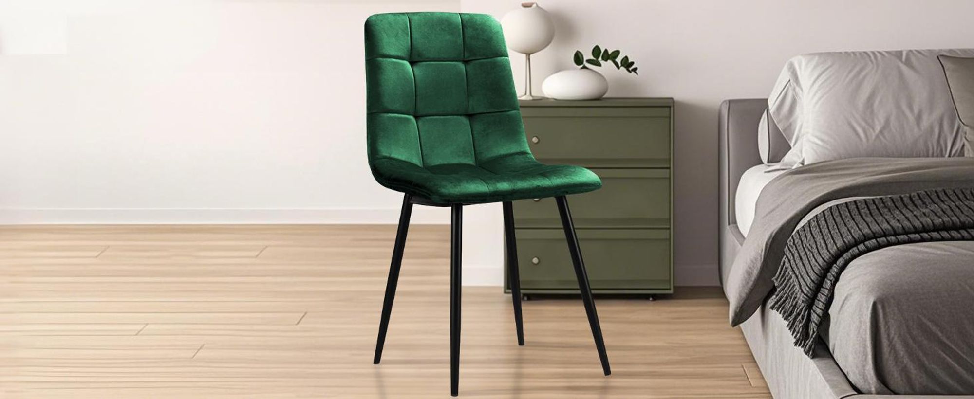 Choose from 5 elegant colors to seamlessly integrate these kitchen chairs into your home decor. Featuring a matte black metal frame and luxurious, soft-touch fabric, the minimalist design of these dining chairs complements any decor—from modern urban style to classic country style.
