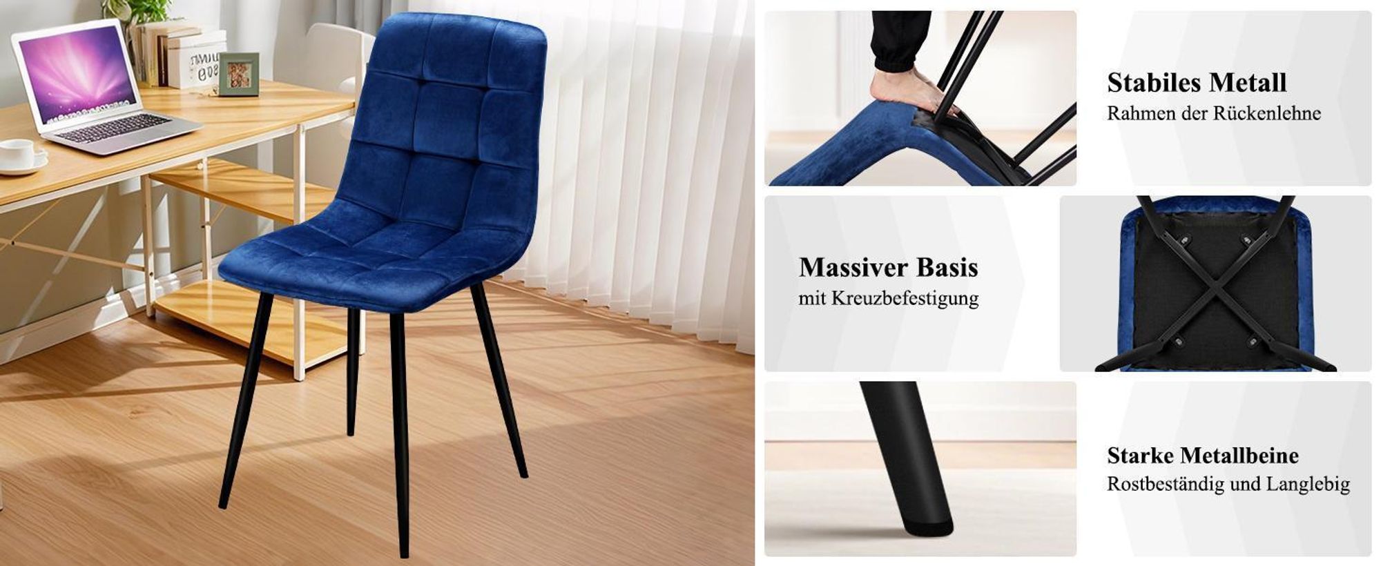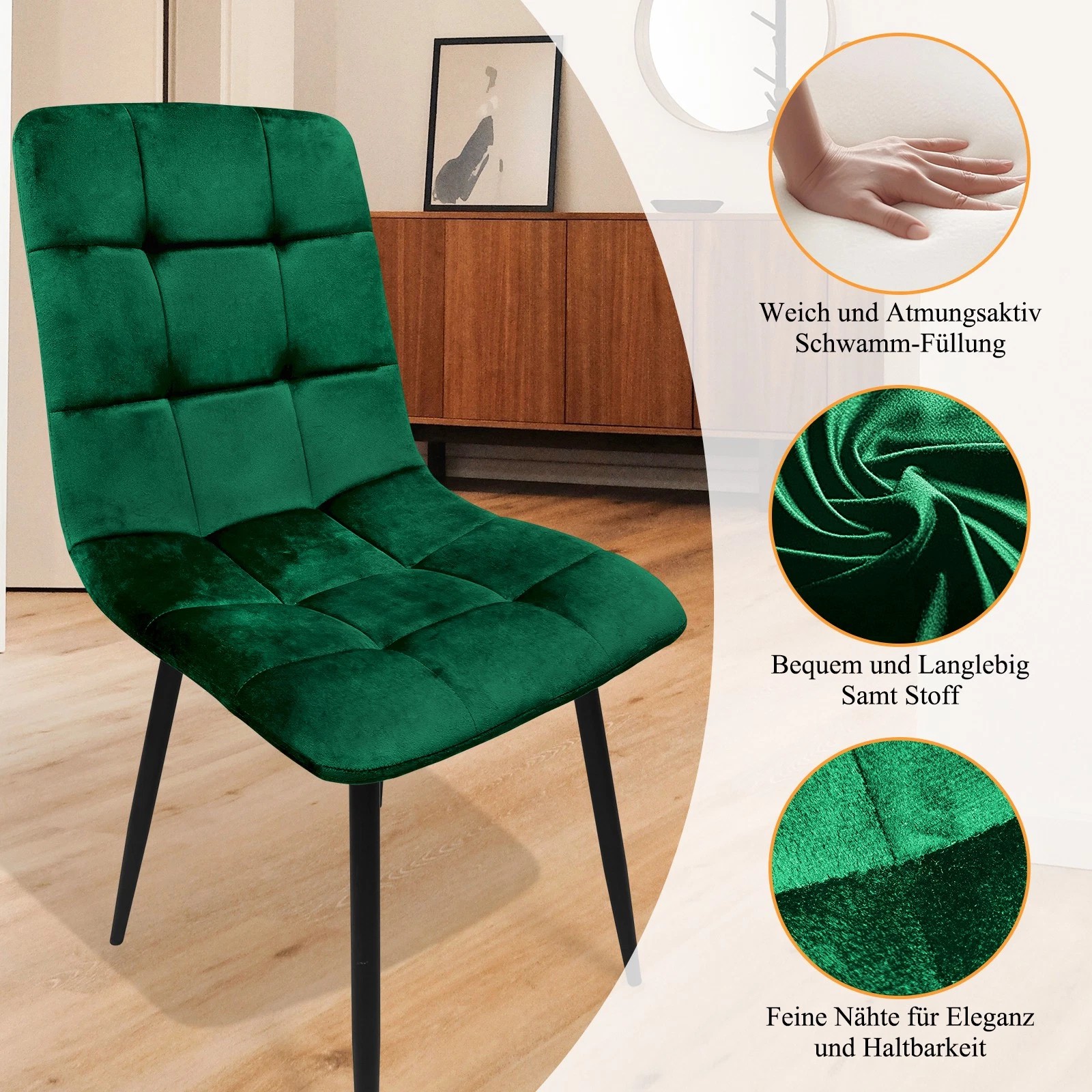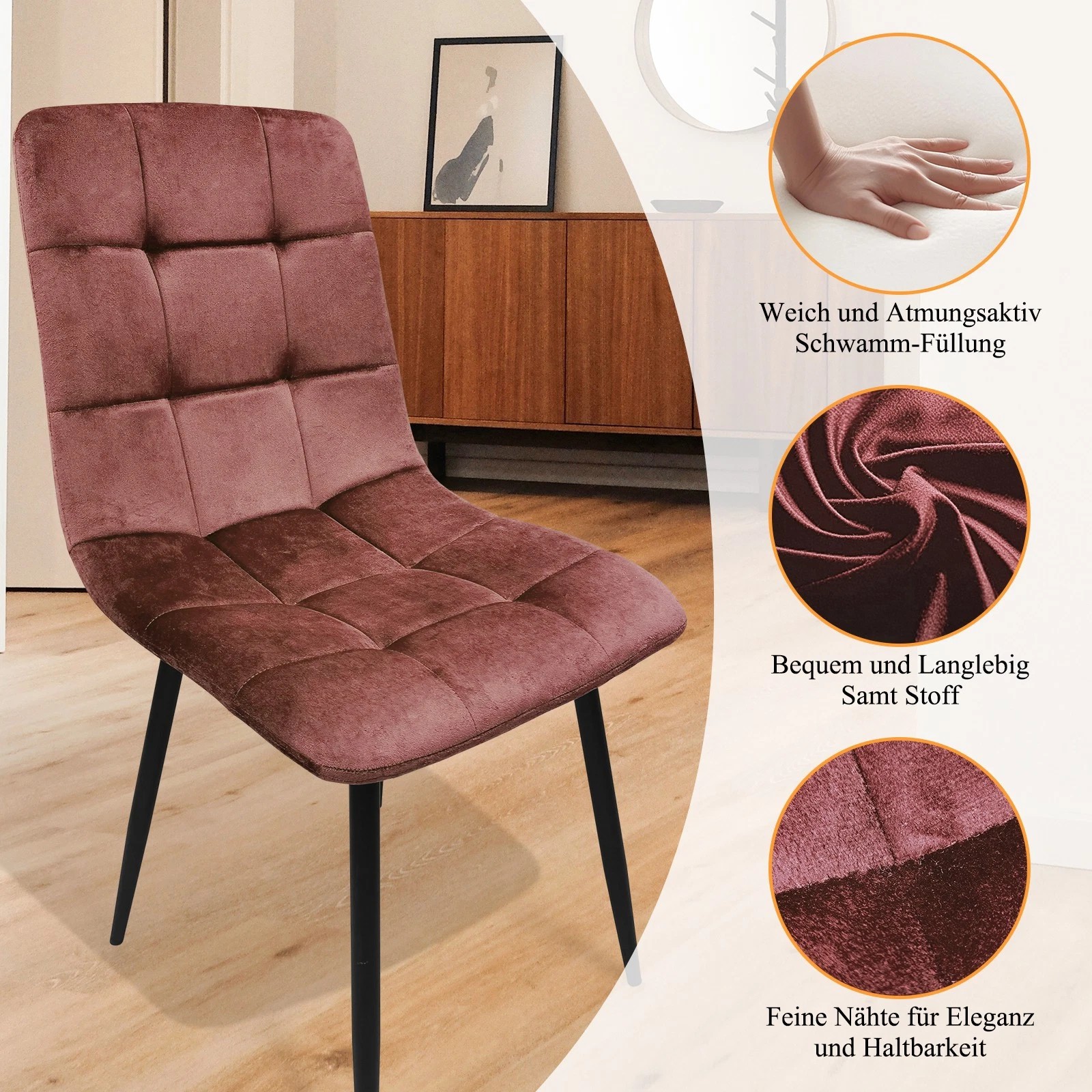 The cozy velvet fabric dining chair is not only extremely comfortable but also easy to care for. Soiling is easily removed, so the chair always looks clean and attractive. This makes it ideal for everyday use and also for households with children or pets. Enjoy the comfort and easy care, whether as bedroom furniture or in your dining lounge.