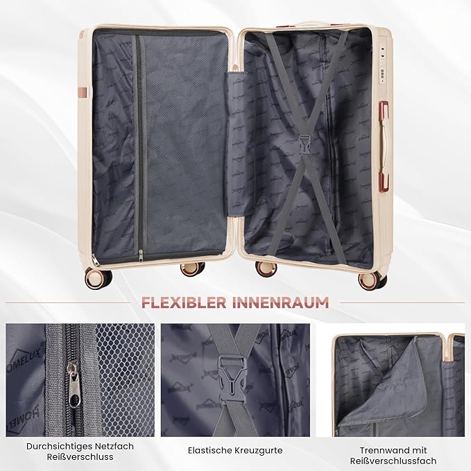 The HOMELUX hard-shell suitcase is made of hard ABS material, is strong, lightweight, and scratch-resistant. Durable and lightweight, high-quality travel suitcase luggage – ideal for business travelers, back to school, and traveling by plane/train/boat.