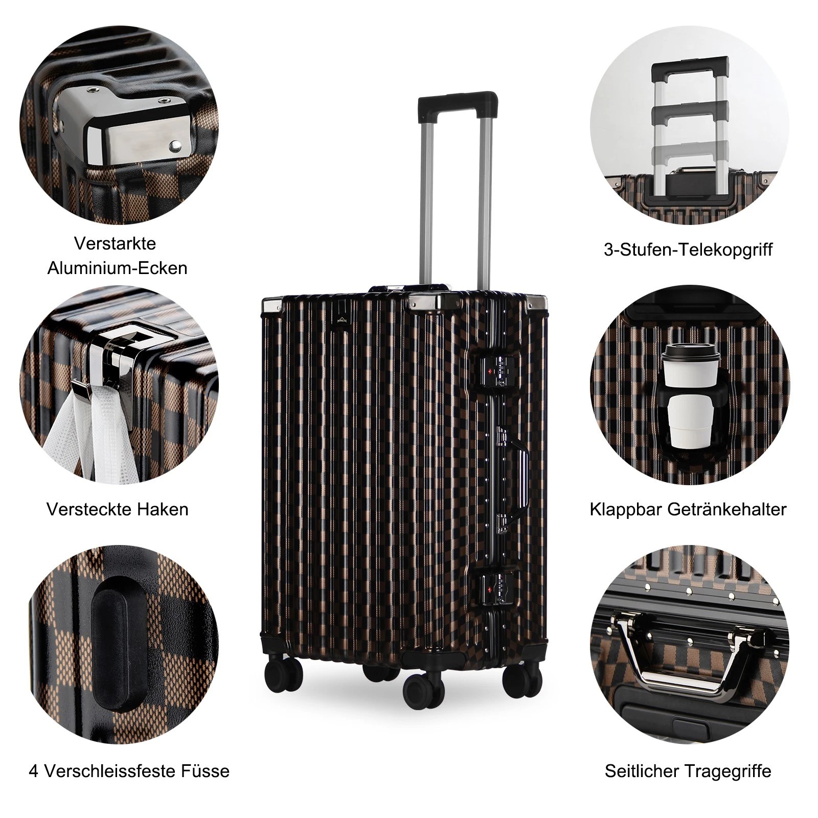 Each suitcase is equipped with four robust aluminum corner protectors that provide additional protection for your belongings. These corner protectors absorb shocks and ensure your luggage remains undamaged during transport.
