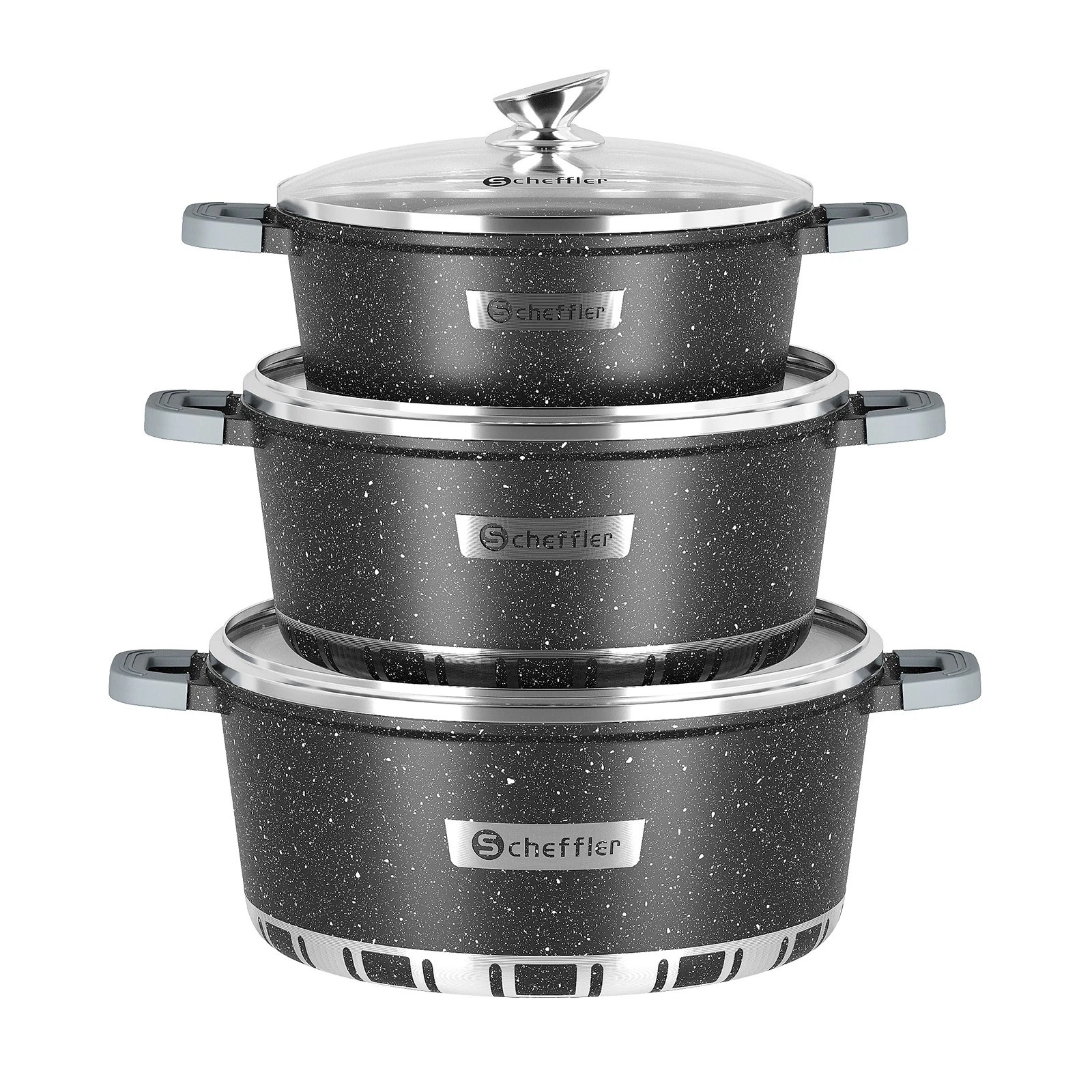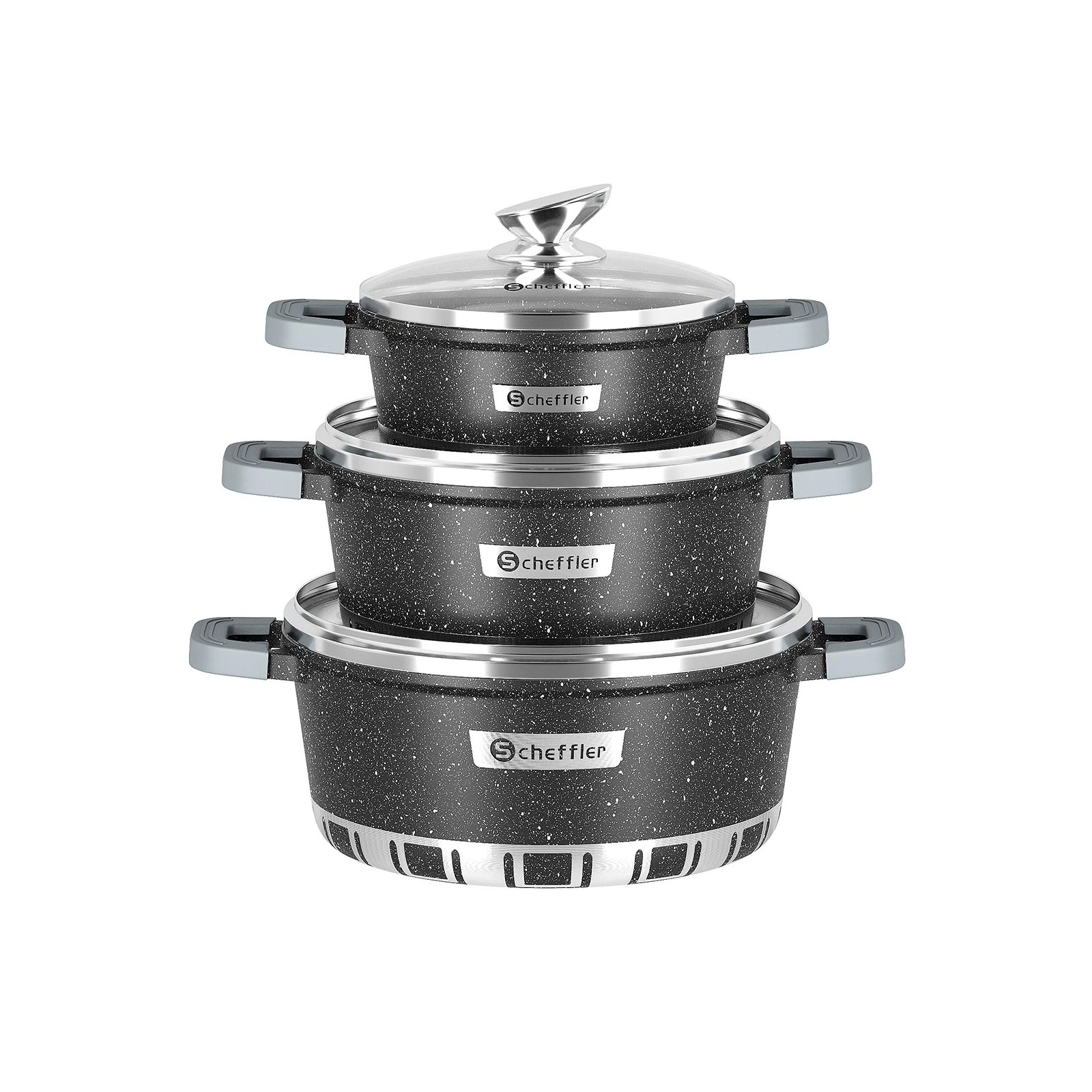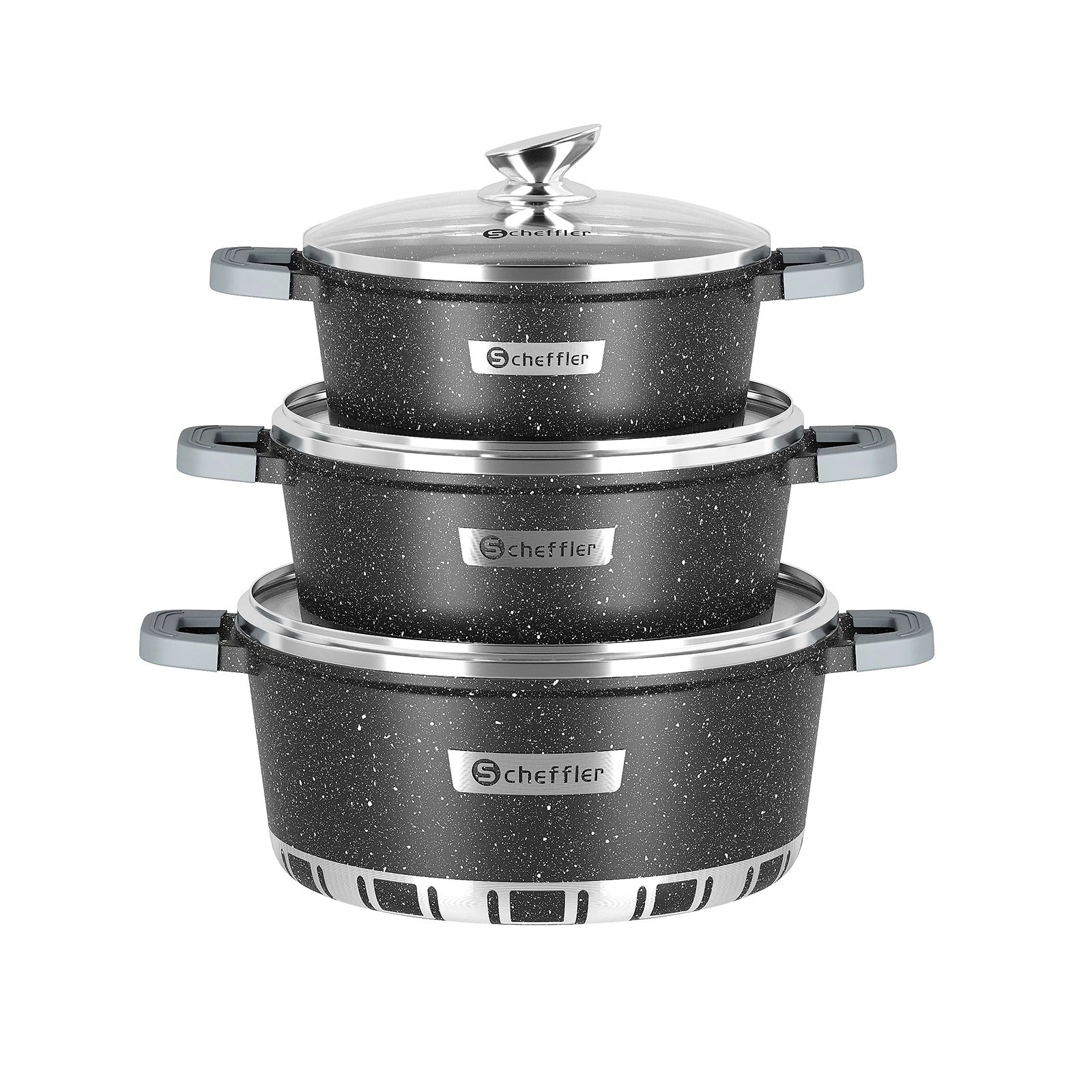 6/8-piece cast aluminum pot set induction with glass lid cookware cooking pot set