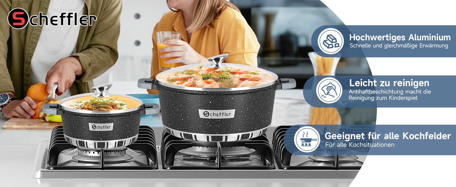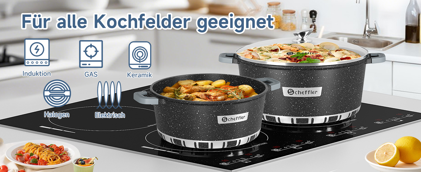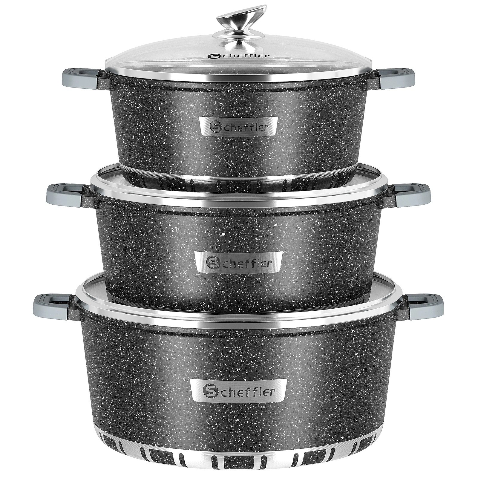 6/8-piece cast aluminum pot set induction with glass lid cookware cooking pot set