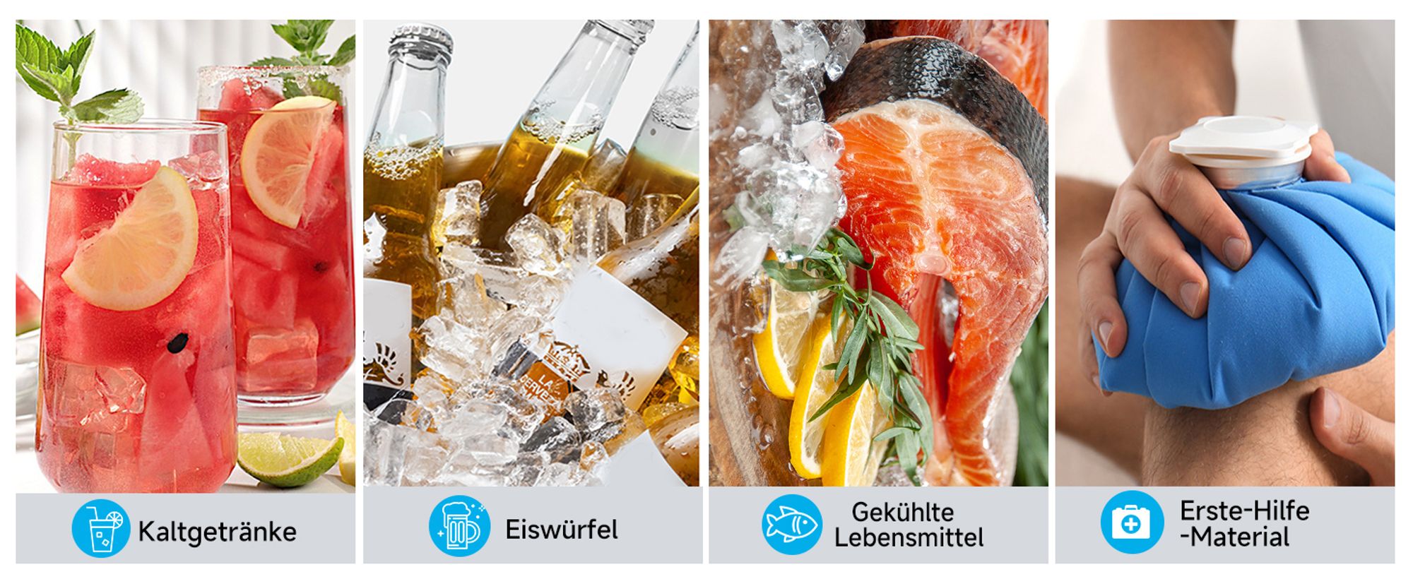Gönnen Sie sich erfrischende Getränke mit der Wahl zwischen zwei Eiswürfelgrößen. Kleine Eiswürfel eignen sich perfekt, um Meeresfrüchte und Bier frisch und kalt zu halten, während große Eiswürfel eine schnelle Kühlwirkung erzielen und sich ideal für eine Vielzahl von Getränken eignen. Diese Eiswürfelmaschine deckt eine vielfältige Palette von Eisbedürfnissen ab und garantiert Zufriedenheit bei jeder Verwendung.