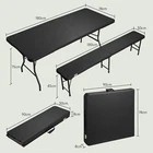 Tisch (LxBxH): 180 × 74 × 75 cm Tisch Geklappt (LxBxH): 90 × 74 cm× 8 cm Bierbank (LxBxH): 180 × 30 × 43 cm Bierbank geklappt (LxBxH): 90 × 30 × 8 cm
