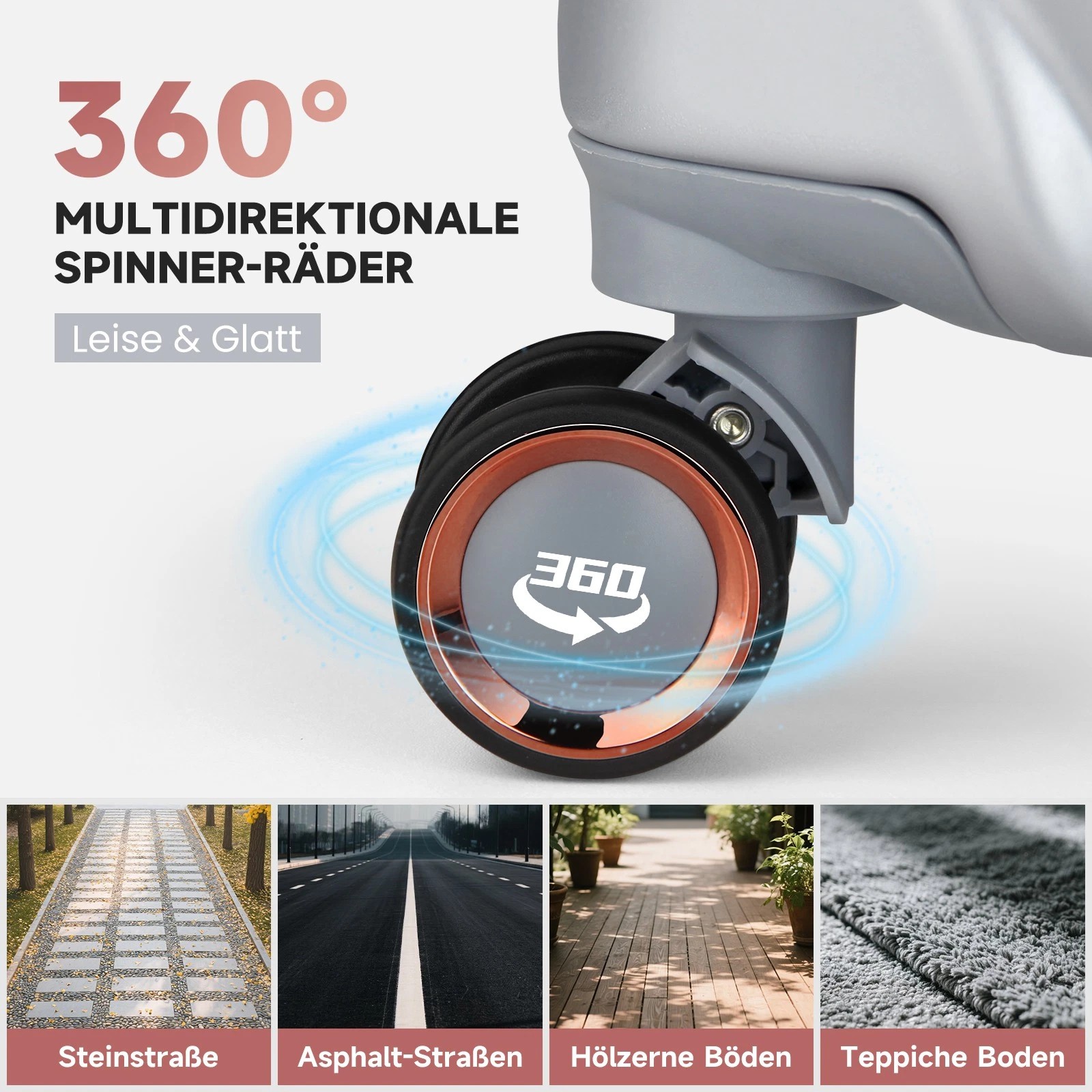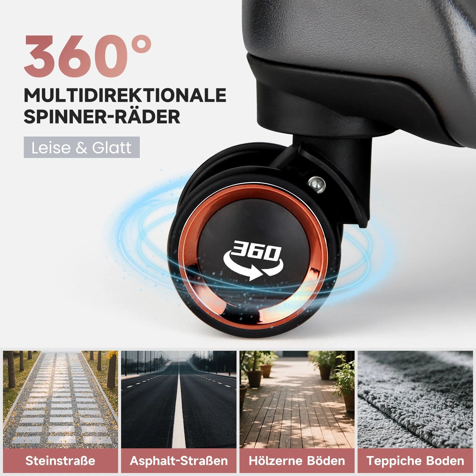 Gleiten Sie mühelos durch jede Reise mit leisen und rutschfesten Rollen, die eine reibungslose Bewegung gewährleisten und gleichzeitig Geräusche reduzieren, um ein angenehmeres Reiseerlebnis zu bieten.