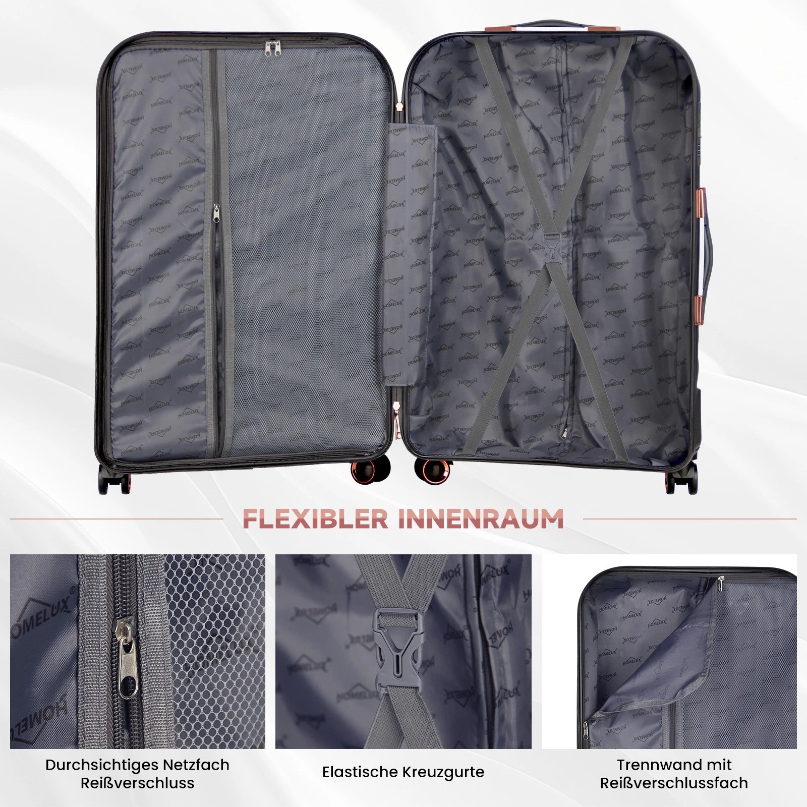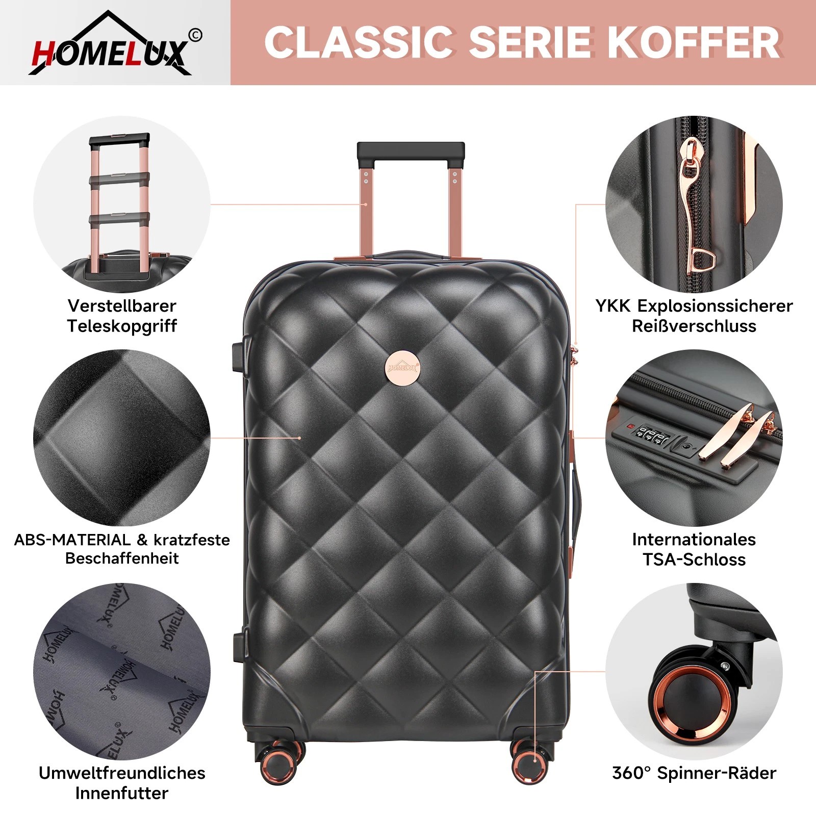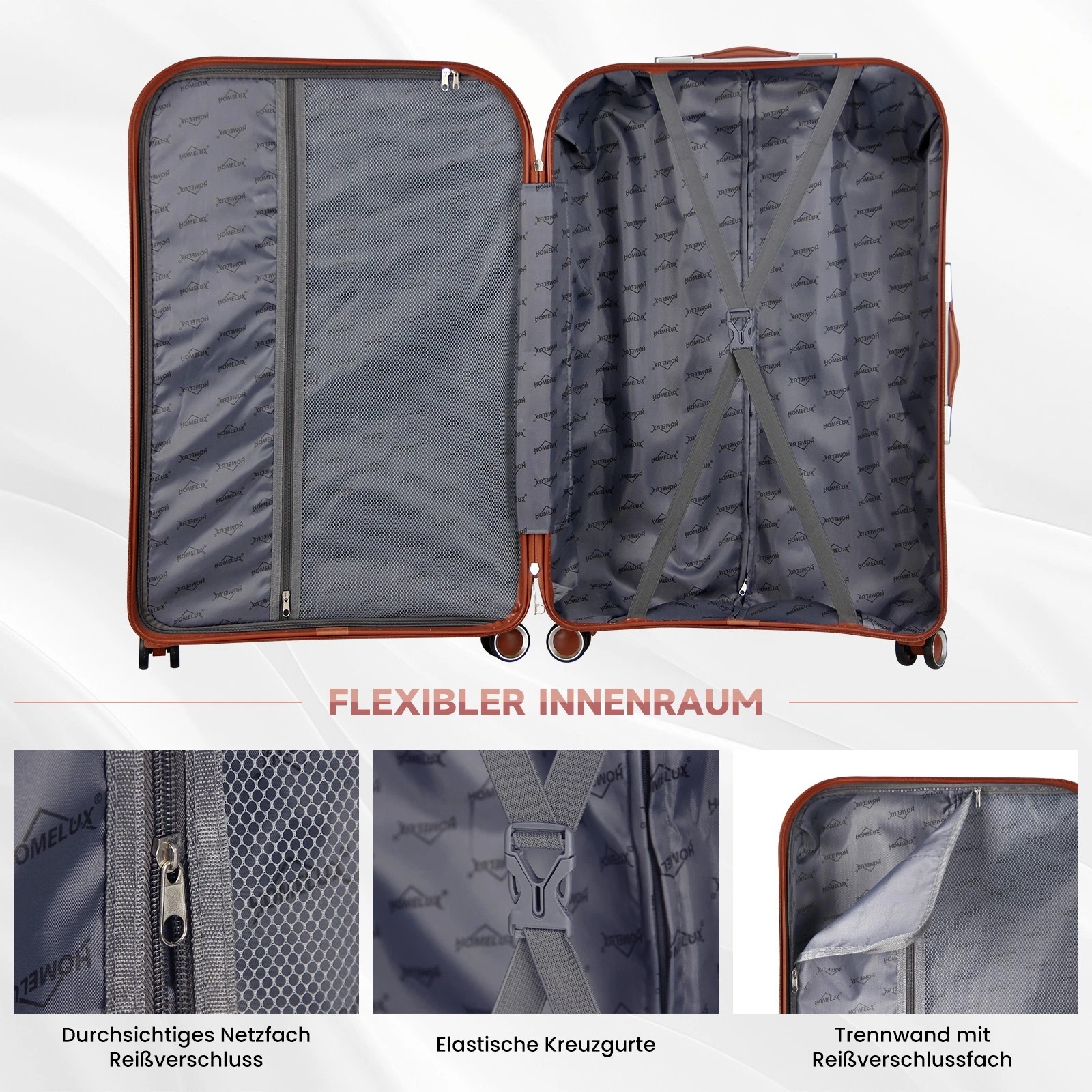 Dieses Hartschalen-Kofferset aus hochwertigem ABS-Kunststoff ist leicht und dennoch widerstandsfähig und bietet Ihren Habseligkeiten hervorragenden Schutz vor Stößen und unsachgemäßer Behandlung.