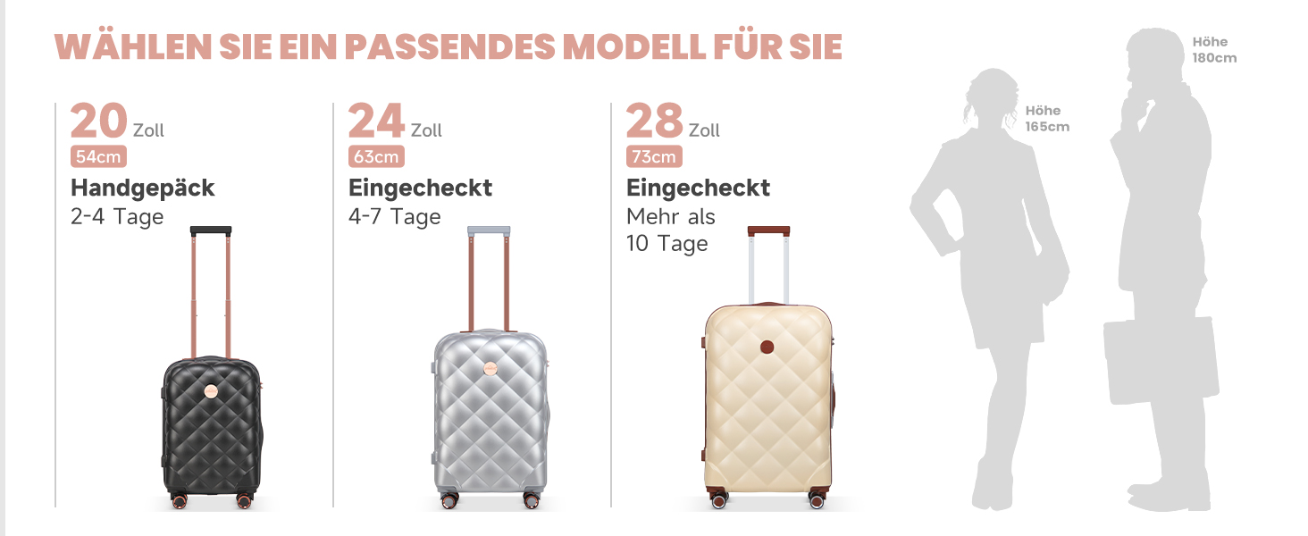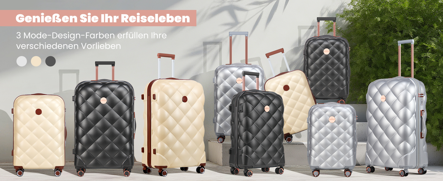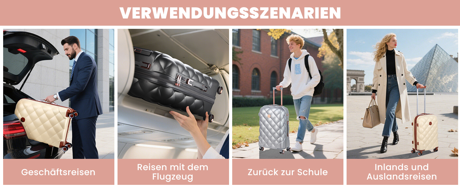 Das 3-teilige Kofferset lässt sich ganz nach Ihren Bedürfnissen und der Dauer Ihrer Reise frei kombinieren und eignet sich somit ideal für Reisen, Wochenendausflüge und kurze Geschäftsreisen. Das Kofferset kann platzsparend gestapelt und zusammen aufbewahrt werden.
