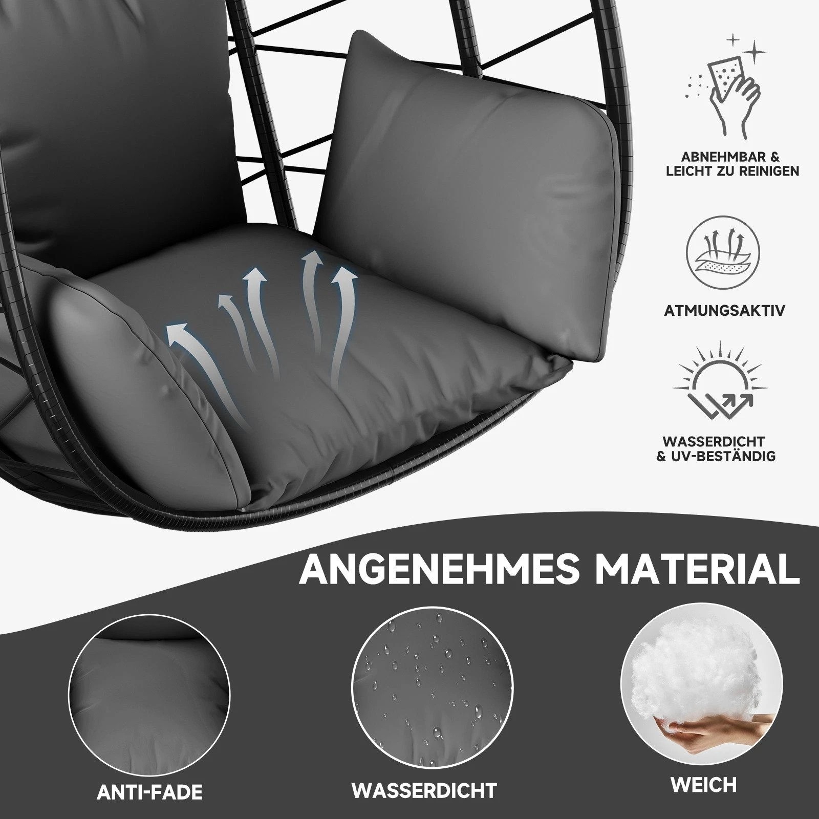Das verdickte Kissen hat eine gute Unterstützung und Polsterung Leistung, die so weich wie eine Wolke ist, und kann auch genug Unterstützung bieten, damit Sie eine komfortable Lese Freizeit in unserem Schaukel Ei Stuhl genießen.
