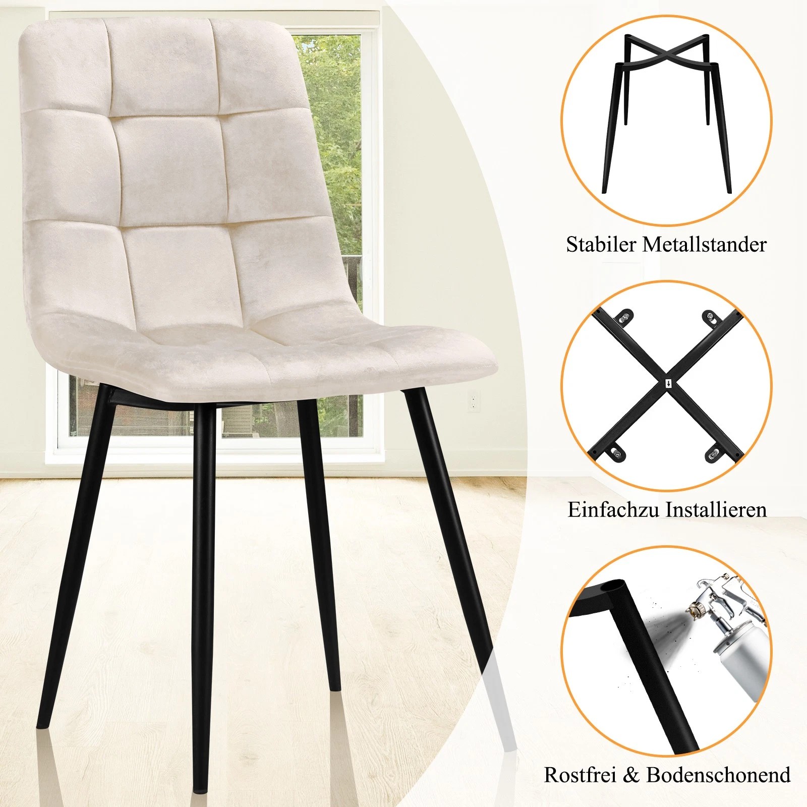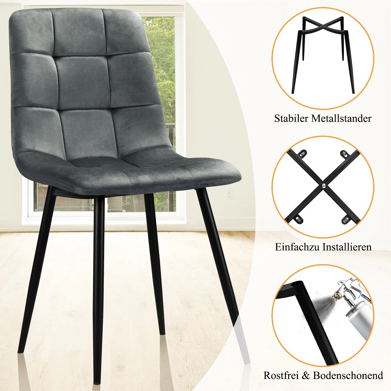 Wählen Sie aus 5 eleganten Farben, um diese Küchenstühle nahtlos in Ihre Wohnkultur zu integrieren. Das minimalistische Design der Esszimmerstühle mit einem mattschwarzen Metallrahmen und luxuriösem, weichem Stoff ergänzt jede Einrichtung – von modernem Stadtstil bis hin zum klassischen Landhausstil.