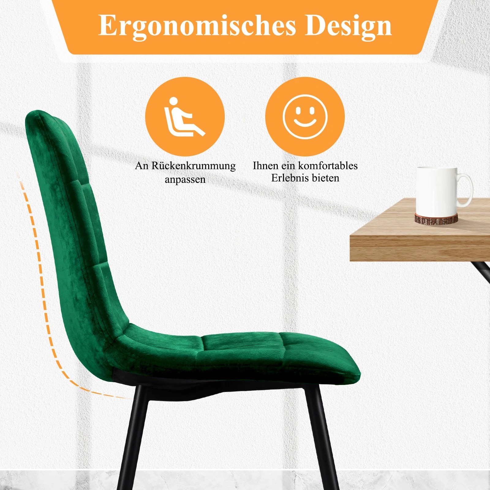 Die ergonomisch geformte Sitzfläche und Lehne mit dicker Schaumstoffpolsterung und weichem Bezug aus Samt sorgen für den optimalen Sitzkomfort und eine effektive Entlastung, so dass lange Abende mit Freunden und Familie immer gemütlich verbracht werden können.