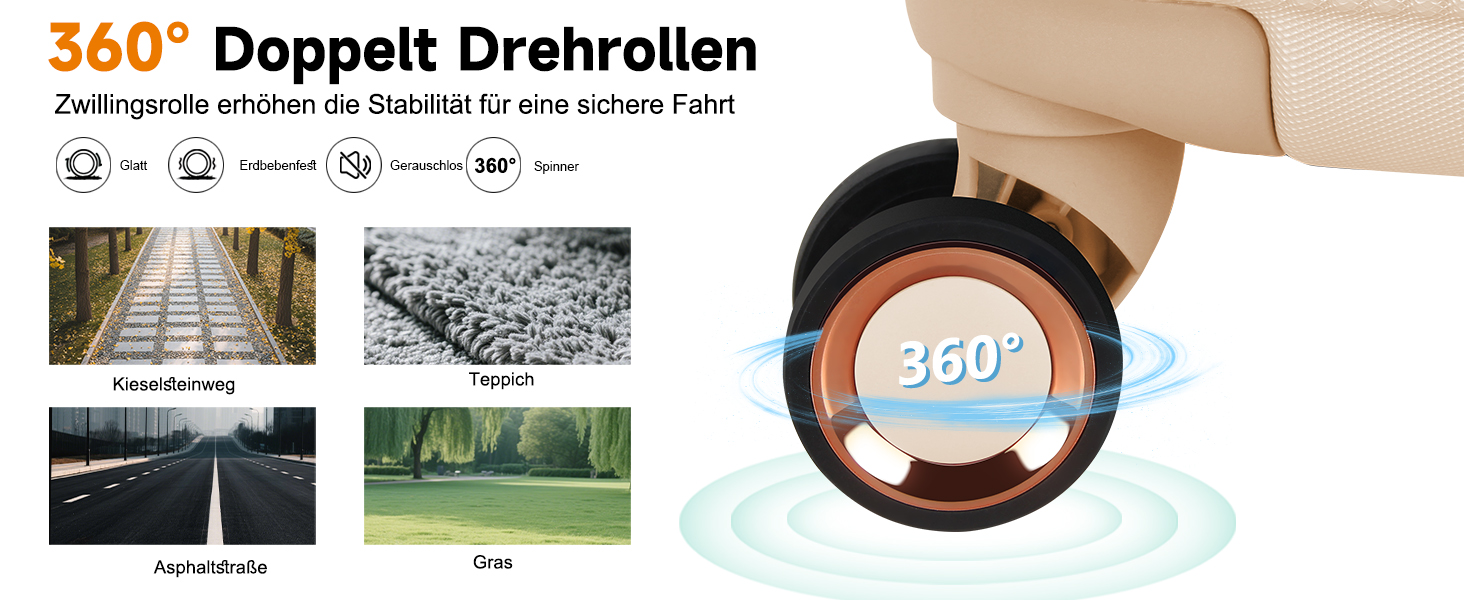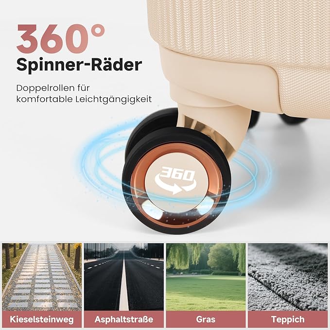 Die multidirektionalen Spinnerräder verteilen das Gewicht Ihres Trolley Rollkoffer gleichmäßig und sorgen für ein einfaches Gleiten durch stark frequentierte Flughäfen oder Bahnhöfe. Festes 3-Zifferblatt-Zahlenschloss für maximale Sicherheit.