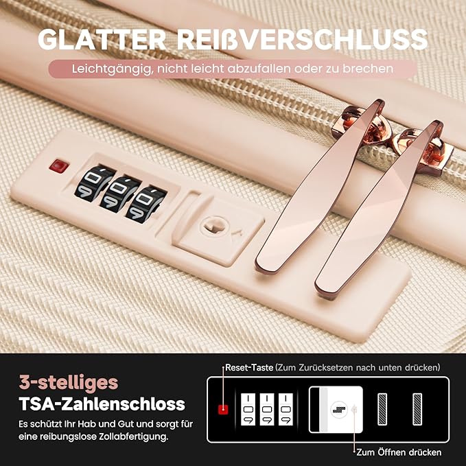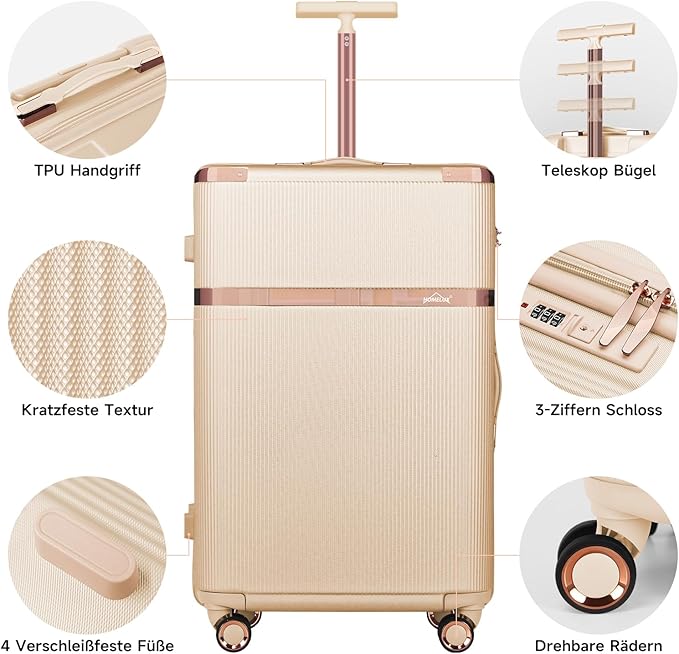 Der suitcase mit einem höhenverstellbaren einziehbaren Griff müssen Sie Ihren Rücken nicht belasten und Sie können sogar kleine Taschen und das Nötigste darauf ablegen. Oberster Teil und der seitliche einfache Haltegriff kann sehr praktisch sein, wenn Sie den Koffer mit schwerem Gewicht anheben, Machen Sie Ihre Reise entspannter.
