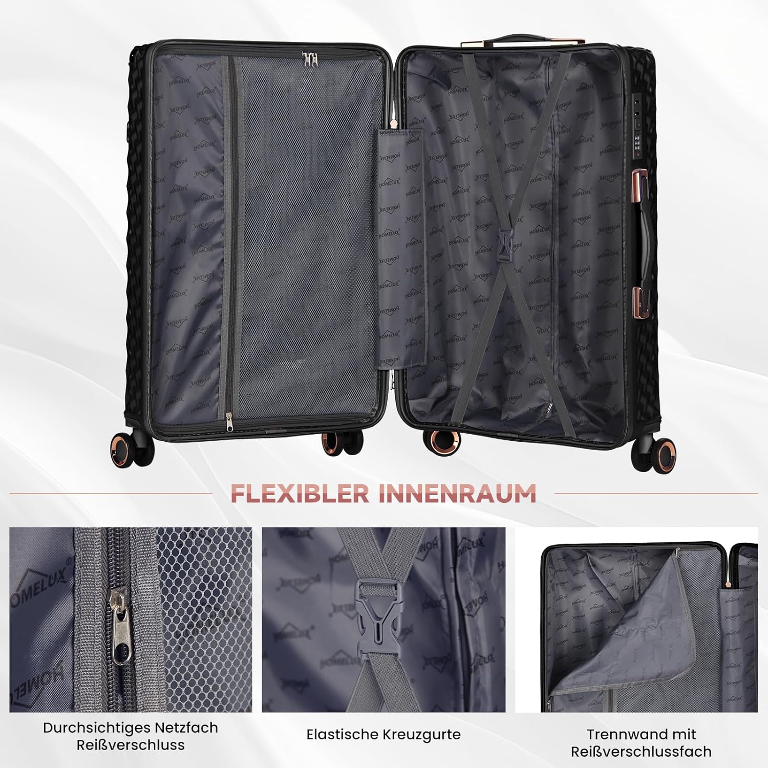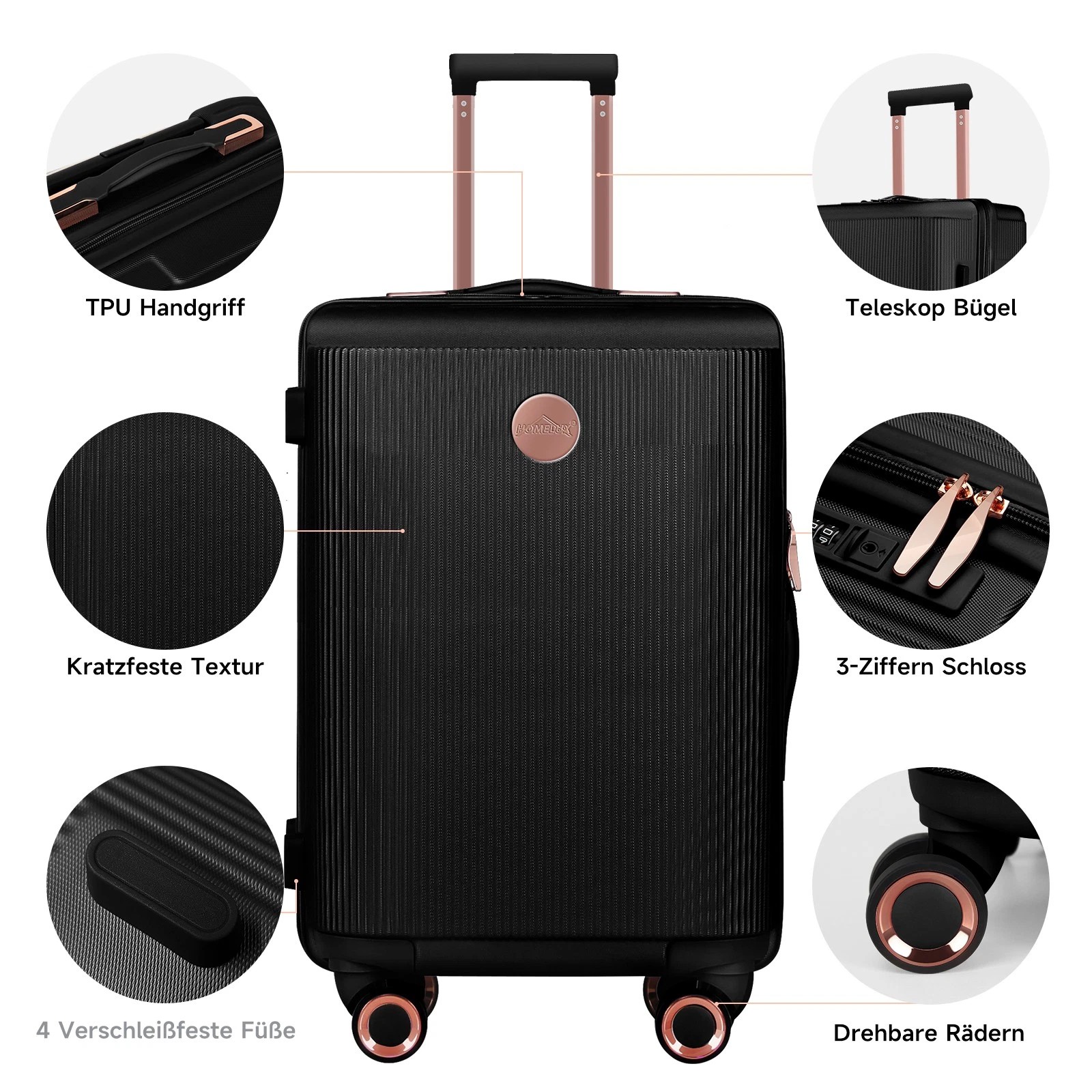 Der HOMELUX Hartschalenkoffers besteht aus hartem ABS-Material, ist stark, leicht und kratzfest. Langlebiges und leicht Reisekoffer Gepäck mit hoher Qualität - am besten für Geschäftsreisende, zurück in die Schule, für Reisen mit dem Flugzeug / Zug / Boot.