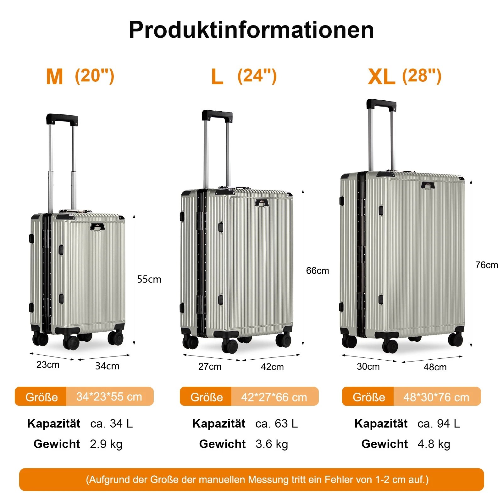 Homelux Reisekoffer bestehen aus einem Rahmen aus einer Aluminium-Magnesium-Legierung und einer hochwertigen ABS-Hartschale, die eine hervorragende Widerstandsfähigkeit gegen Stöße, Kratzer und äußere Einflüsse bietet.