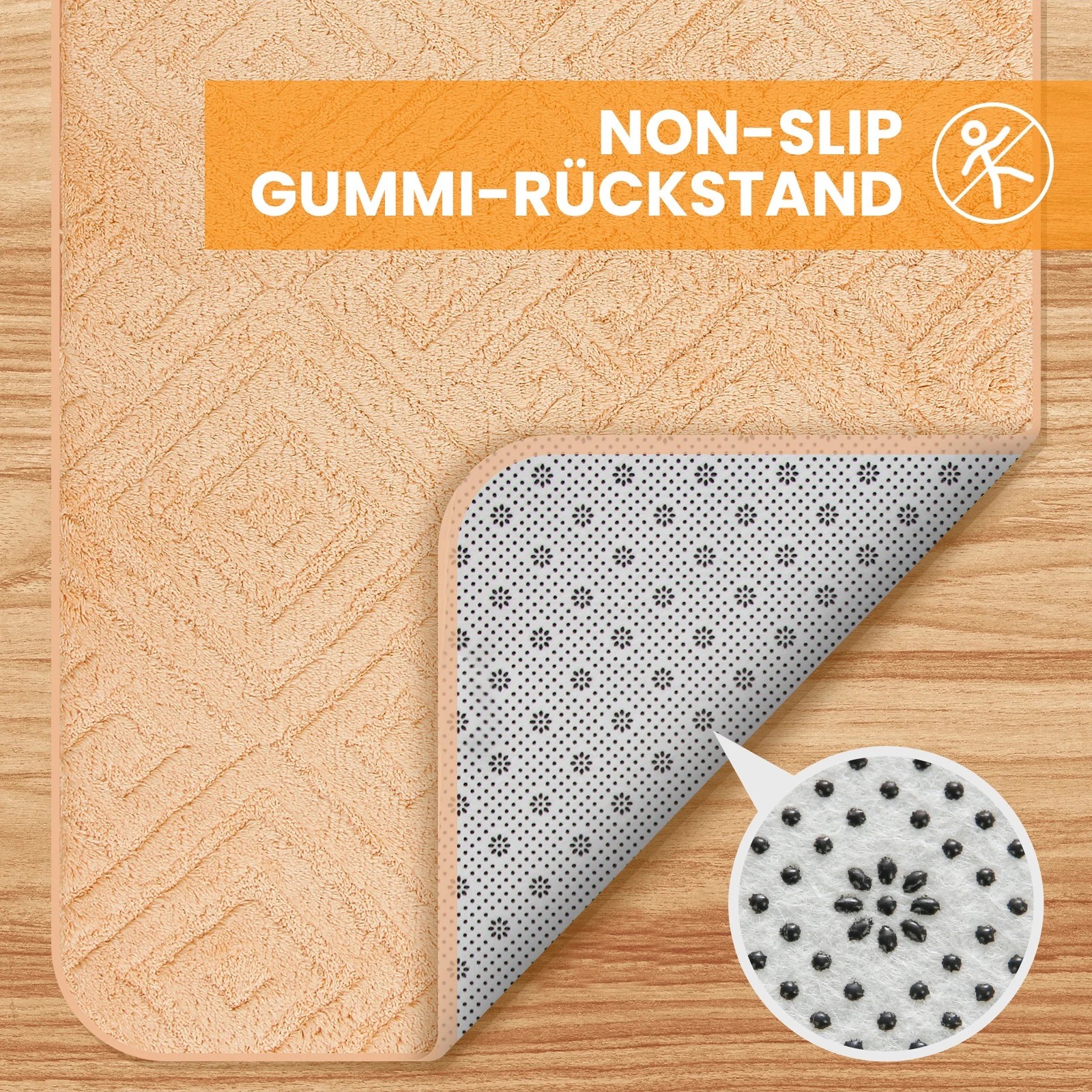 Die spezielle Gummibeschichtung sorgt dafür, dass die Matte sicher an ihrem Platz bleibt und keine Verrutschungen mehr auftreten – ideal für Flur, Küche oder Bad. Sorgt für zusätzliche Sicherheit ,nicht verletzen den Boden.