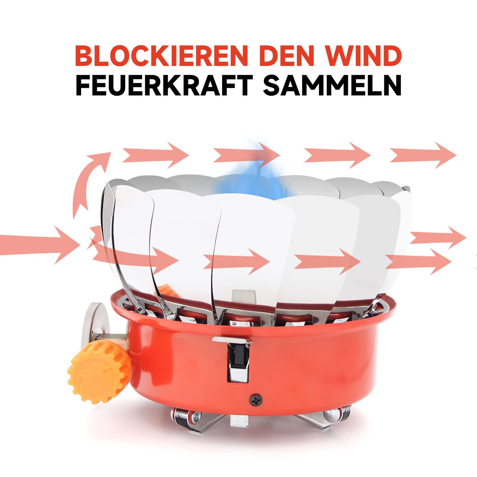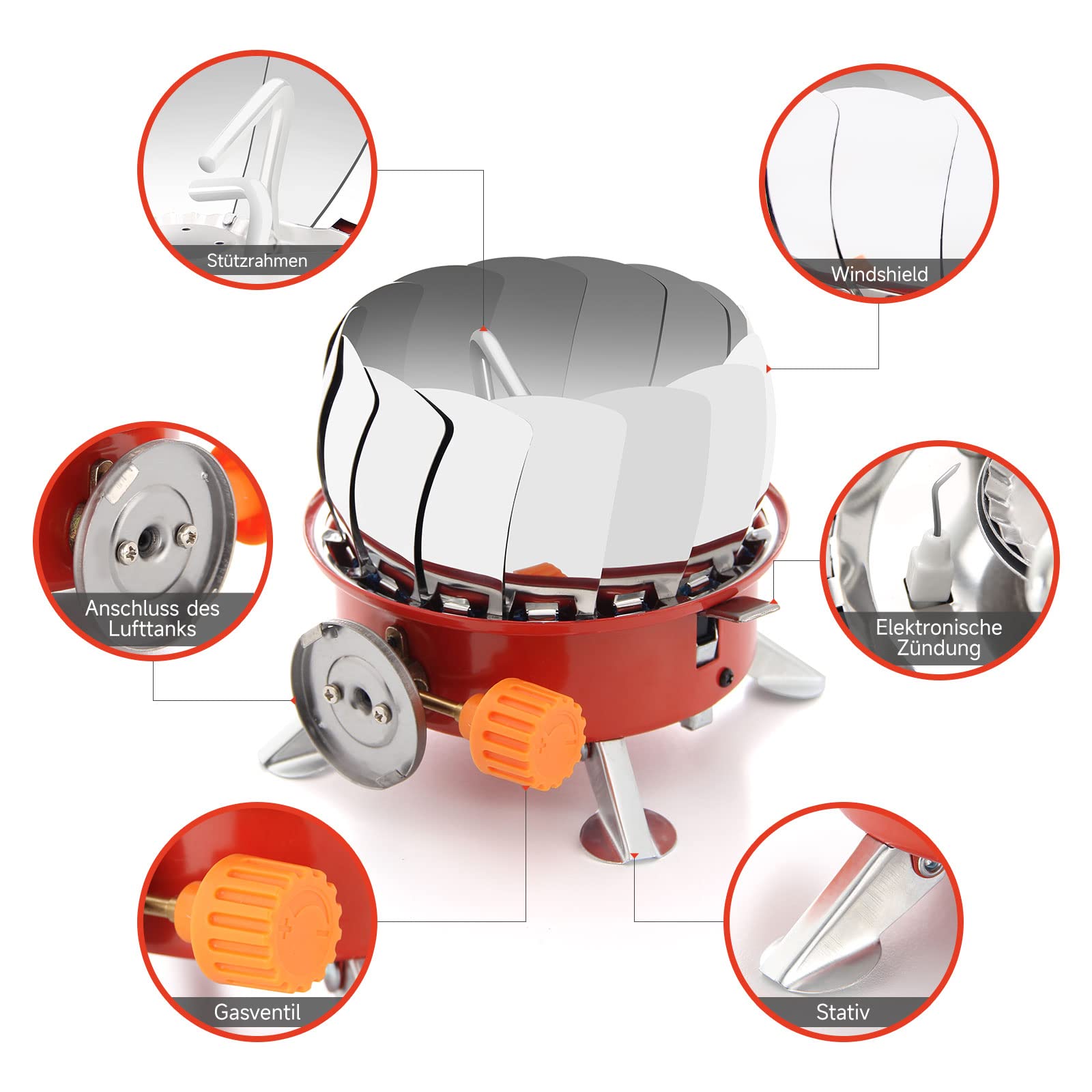 the gas stove has a windscreen design. When used outdoors, it can block the wind well, collect heat and cook food quickly. The non-slip metal feet on the bottom can effectively prevent the gas stove from wobbling and ensure stability. Humanised design gives you a better experience.