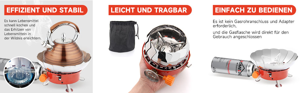this portable gas stove is easy to store and transport, perfect for picnics, camping, hiking. The stylish appearance is also very suitable as a gift, and it is also a very good choice to give it to friends.