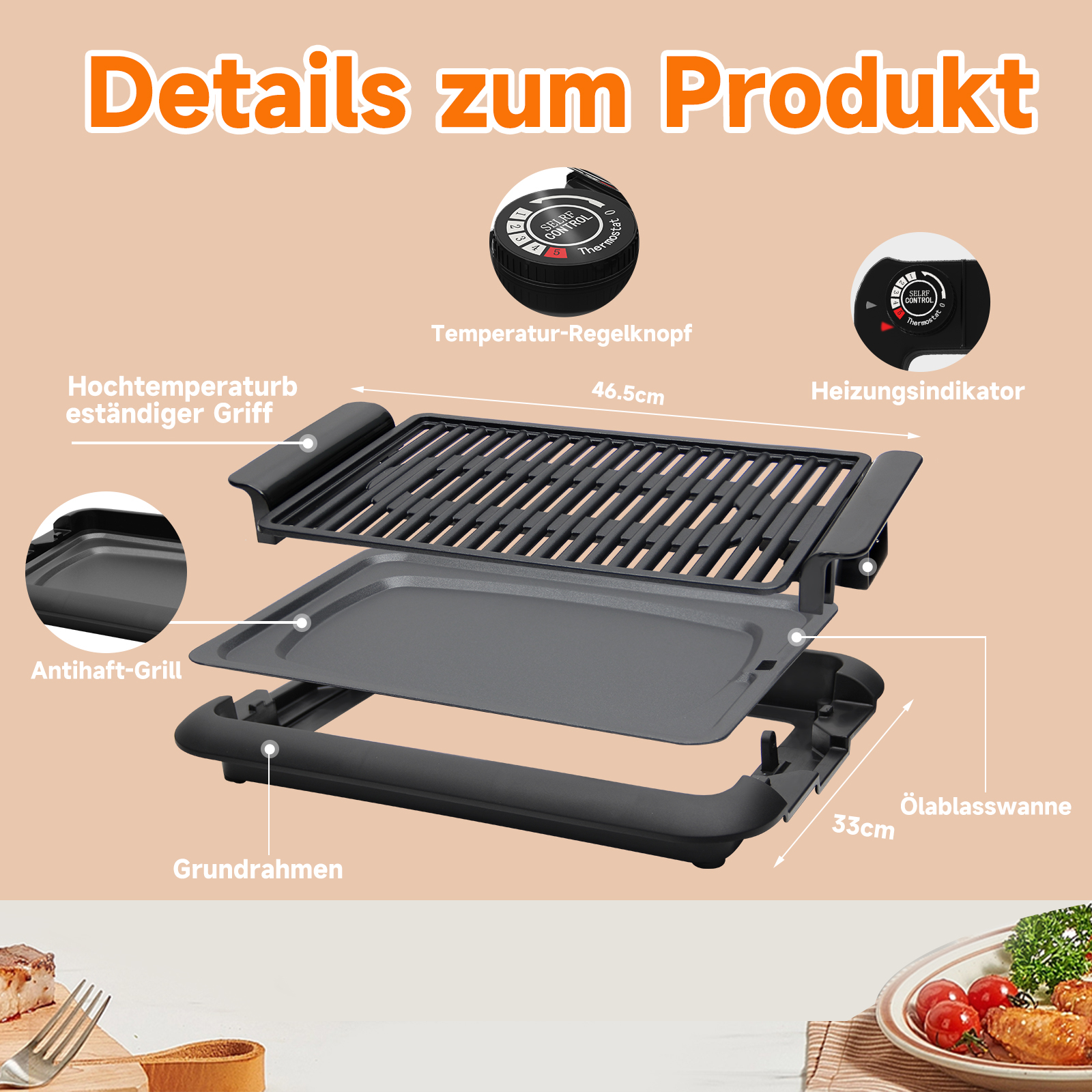 1200W table grill, quick heating, even heat distribution. Use the table grill to heat up, so you can quickly prepare delicious grilled dishes.