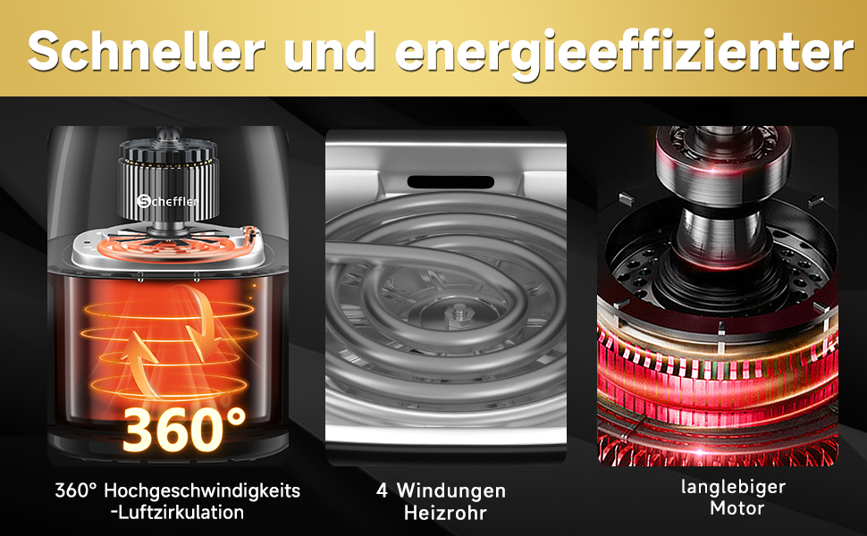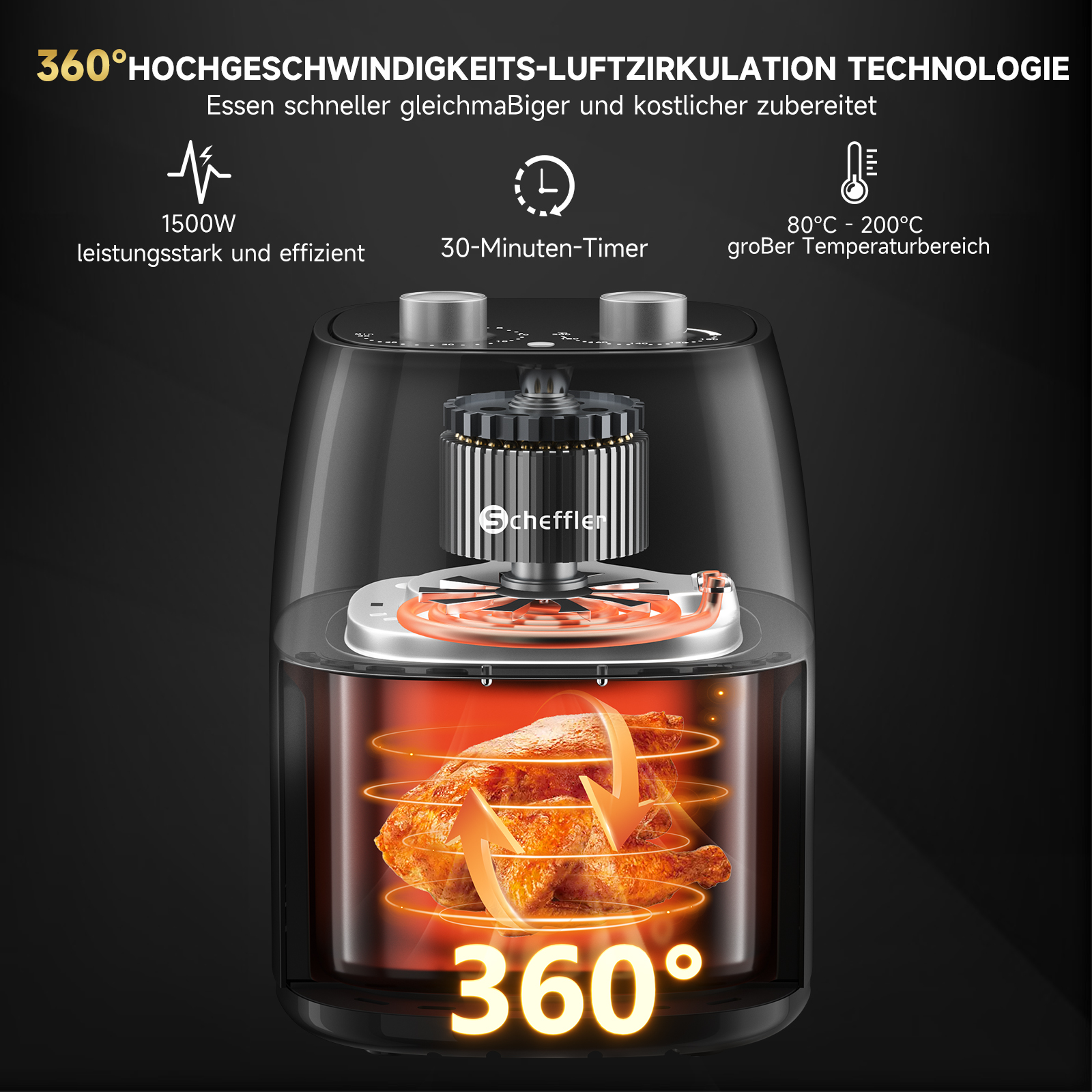thanks to the fast air circulation system of the 1500 W air fryer, the air can heat up quickly and circulate around your food, which allows the food to be cooked evenly and locks in moisture, resulting in incomparable crispness. In addition, it consumes up to 85% less oil and is 30% more efficient compared to conventional deep frying.
