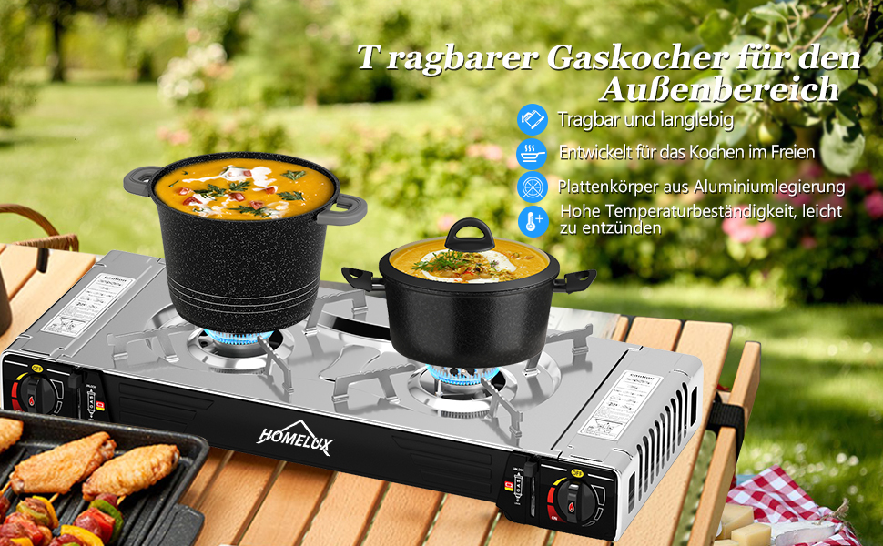 ideal for camping, fishing, travel, adventure, emergencies at home, etc. Homelux is responsible for its products. If you need help with the butane cooker during use, please let us know here for free to serve you.