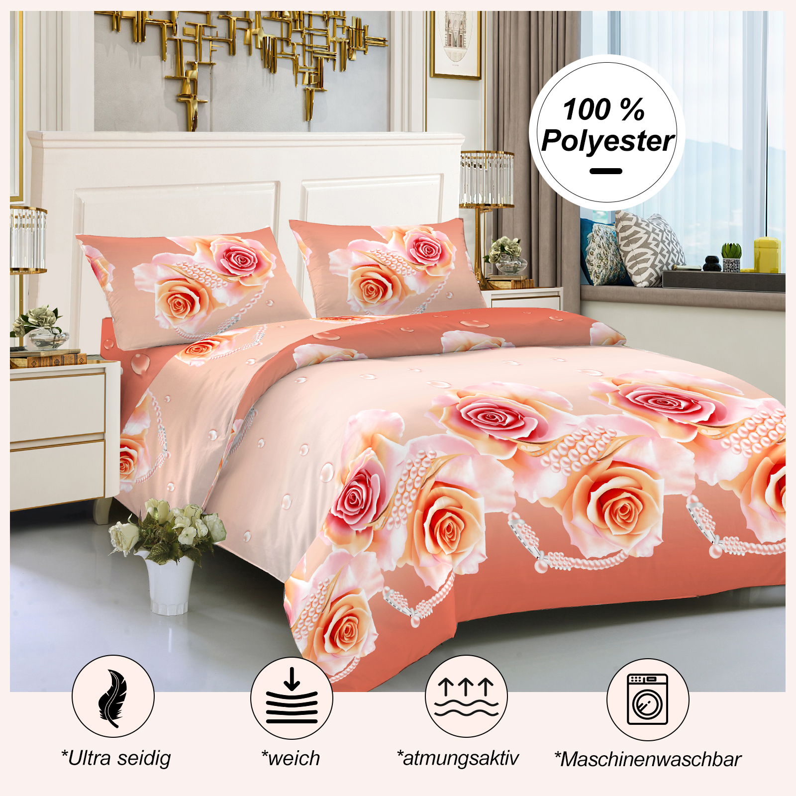 ultra silky, breathable, skin-friendly and durable, soft, smooth and durable polyester fabric. You feel refreshed and rejuvenated. Ideal for summer, autumn and spring. Thanks to the highly tear-resistant polyester fabric, our Scheffler bed linen set remains in original condition even after frequent washing. High durability, more durable than cotton.