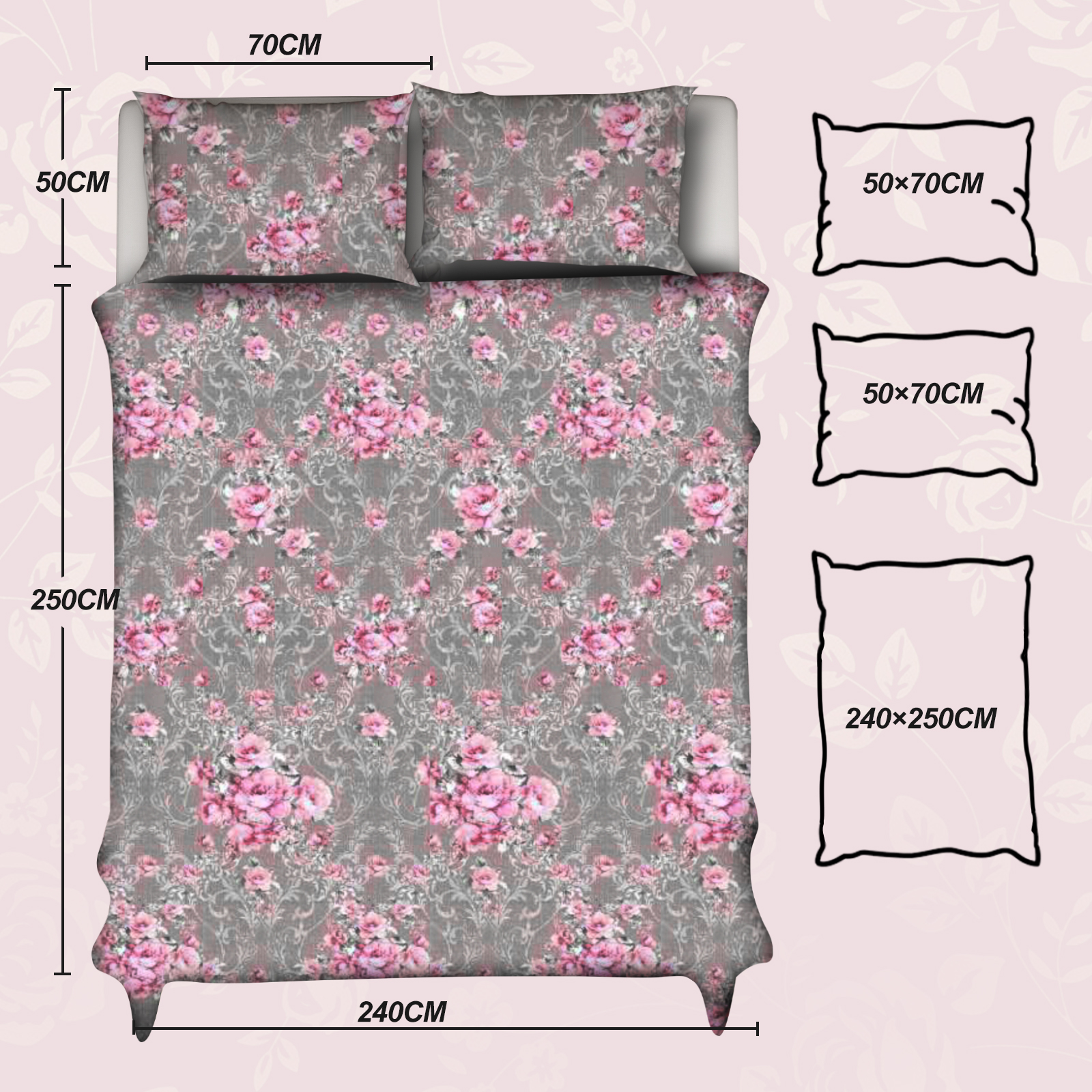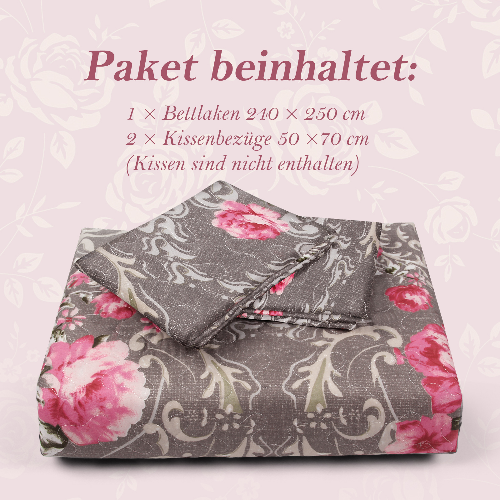Scheffler bedding set (1 x 240 x 250 cm flat sheet & 2 x 50 x 70 cm pillowcases). Due to the light when shooting and the different brightness of the display, there may be different colours so there may be a little colour difference if you have received the 3-piece set.Please do not hesitate to contact us if you have any questions about use or quality problems.