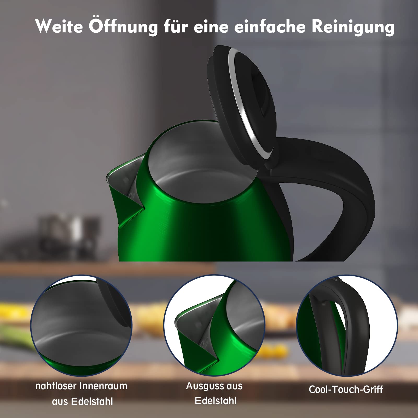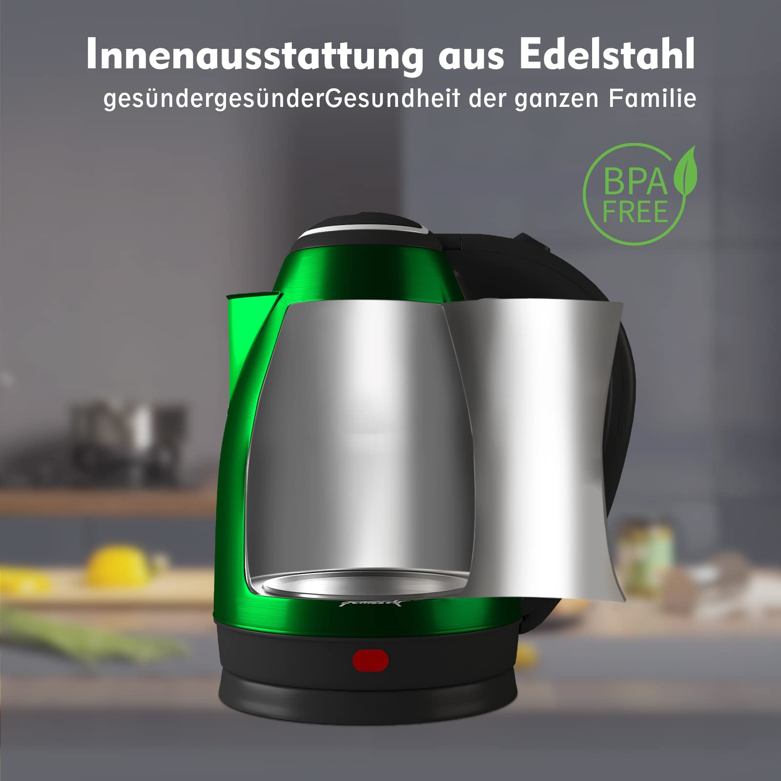 HOMELUX electric kettle stainless steel BPA-free hot water boiler, rapid flow heater, 1.8 l, 1500 W, automatic switch-off and boil-dry protection, suitable for coffee, tea, YQ-621G