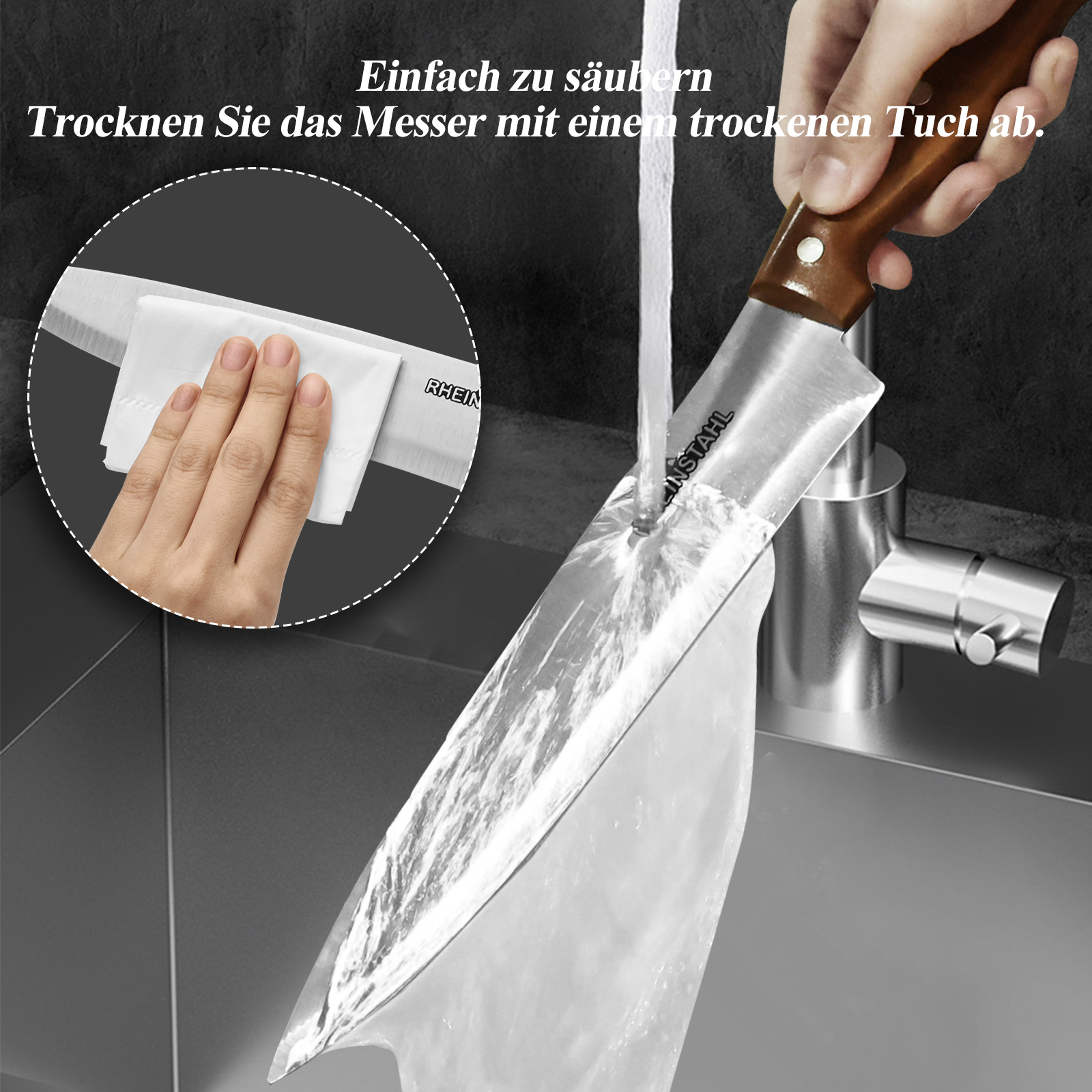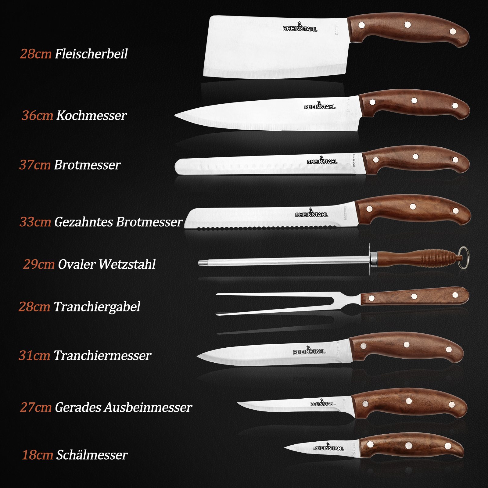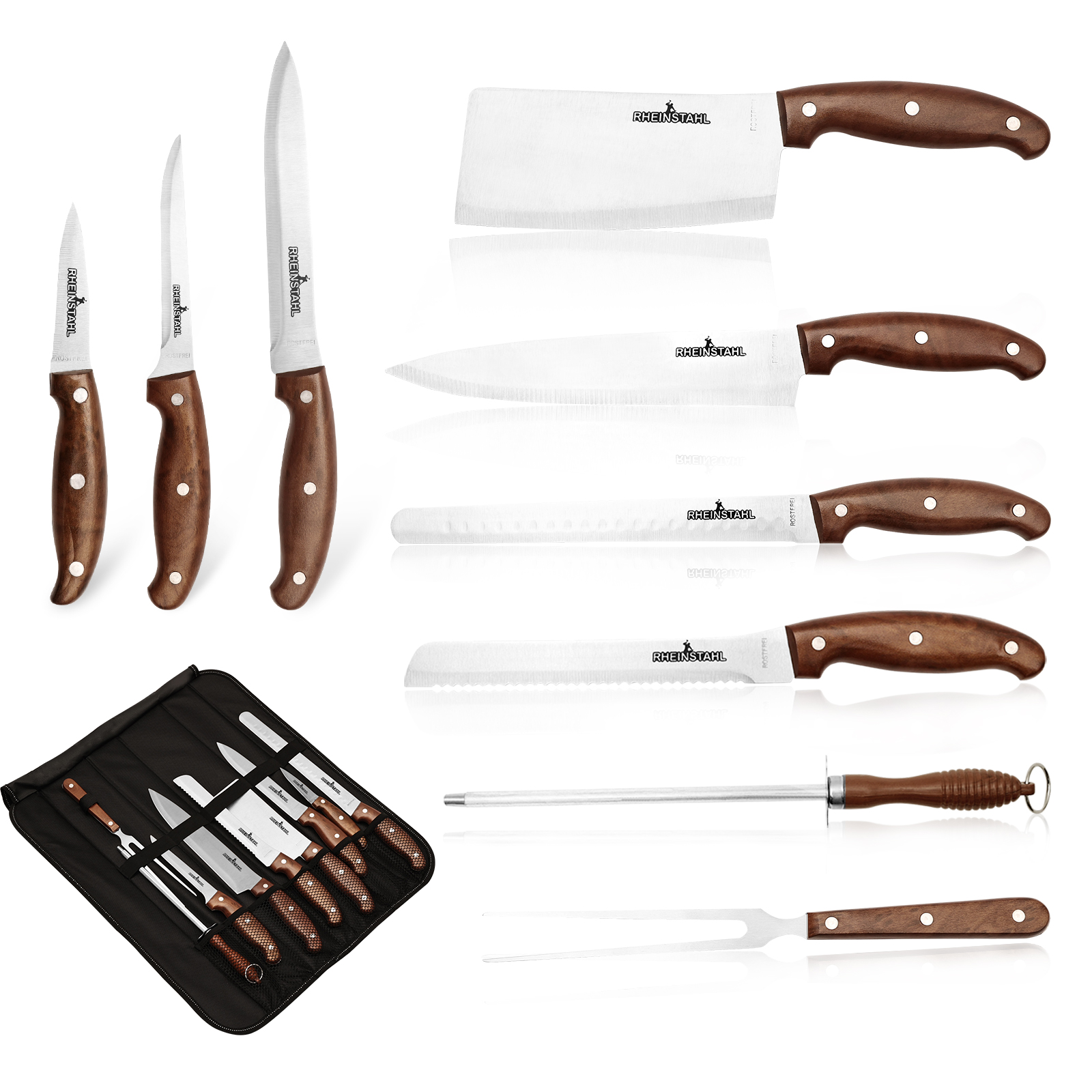 RHEINSTAHL Professional knife set, with 8 pieces, chef's knife with stainless steel, including kitchen scissors, kitchen knife and fruit cutter, bread knife,RS-6011
