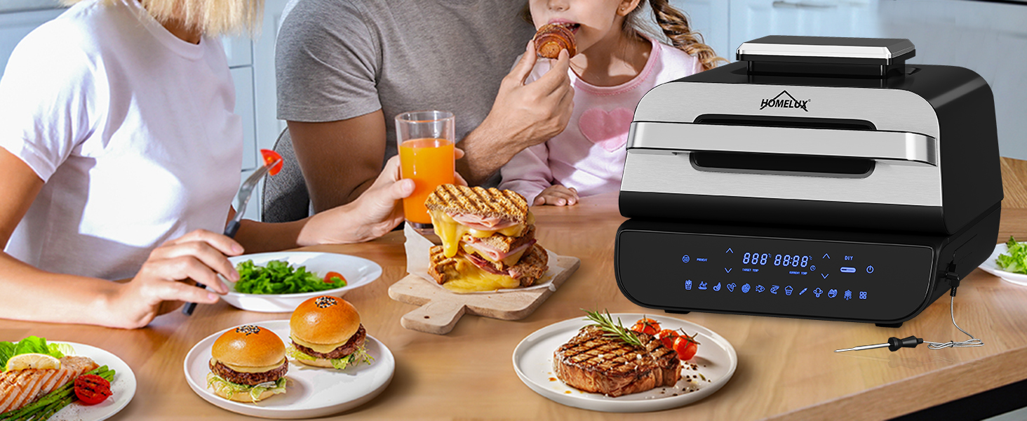 360° ultra-high temperature cyclones and grill grooves reduce fat by up to 85%. Smoke control technology minimizes smoke formation during grilling.