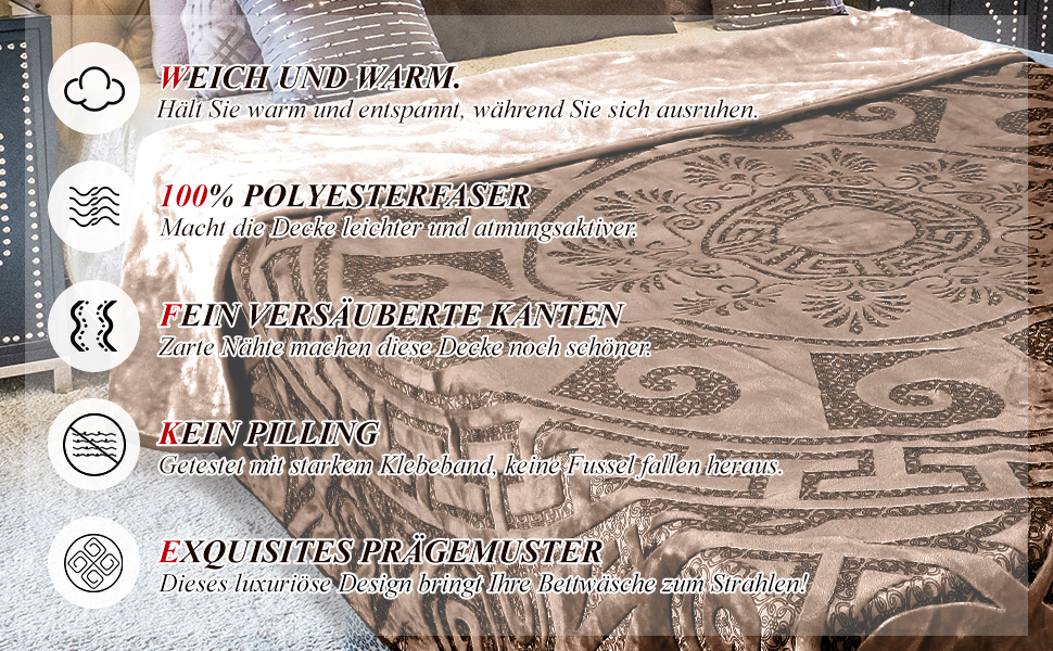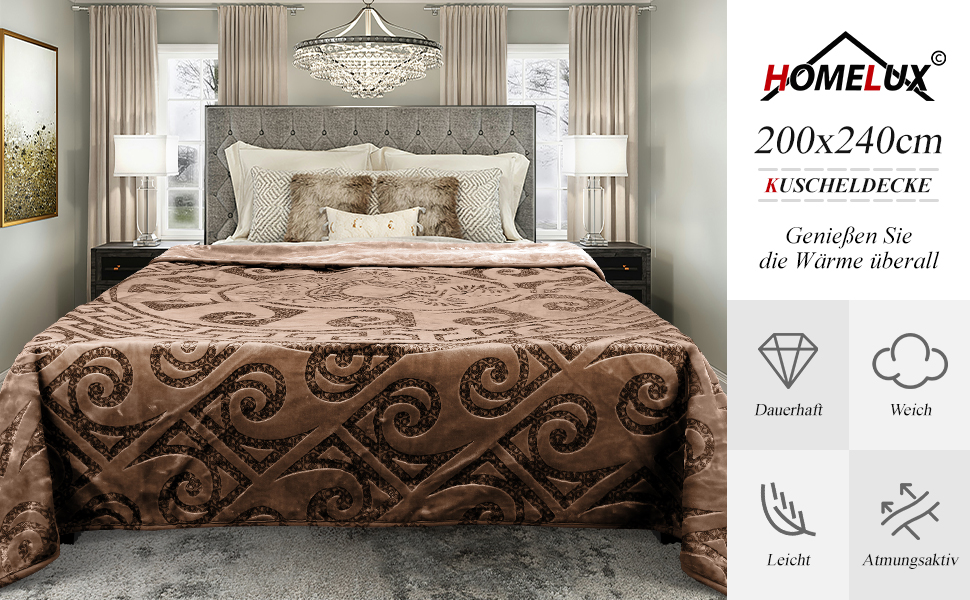 200x240cm blanket is made of high-quality material, light and soft, breathable and skin-friendly. It offers you maximum comfort all year round.