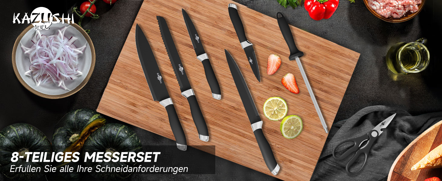 This original 8-piece kitchen knife set with block is an elegant kitchen decoration and a good choice as a gift. Please feel free to contact us if you have any questions about usage or quality issues.