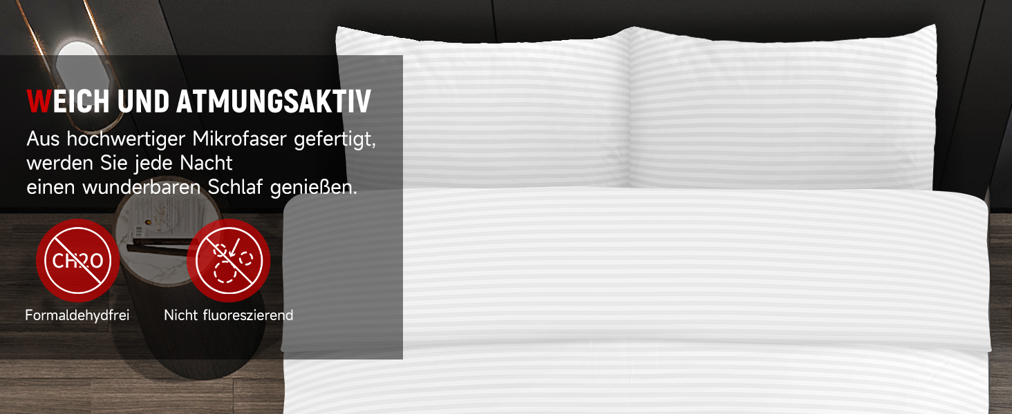 1 duvet cover 220x240cm+1 duvet cover 200x220cm+2 pillowcases 50x70cm) with a smooth surface and fine feel is made of microfibre and therefore feels very pleasant on the skin as it is particularly soft and skin-friendly, allowing you to enjoy a restful night's sleep.