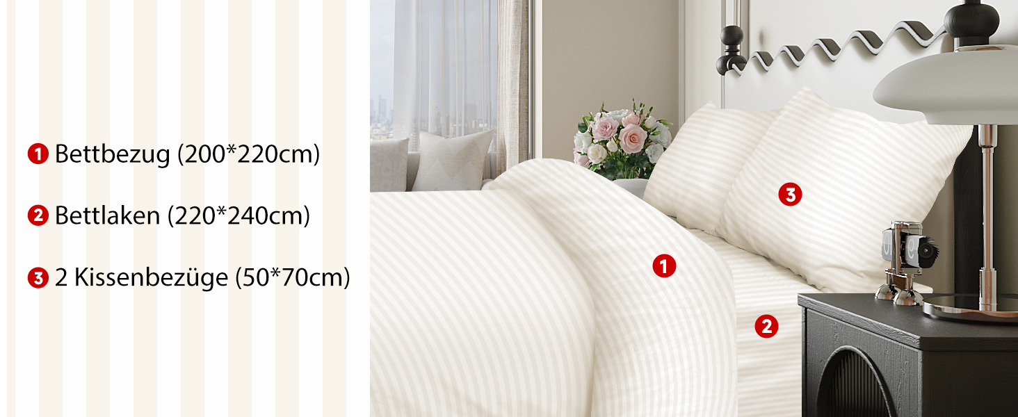 1 duvet cover 220x240cm+1 duvet cover 200x220cm+2 pillowcases 50x70cm) with a smooth surface and fine feel is made of microfibre and therefore feels very pleasant on the skin as it is particularly soft and skin-friendly, allowing you to enjoy a restful night's sleep.