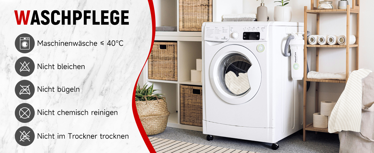 Our bed linen is easy to care for and can be washed. It is also suitable for tumble drying at a low temperature, easy to iron and retains its shape even after many washes. The zips should be closed when washing.