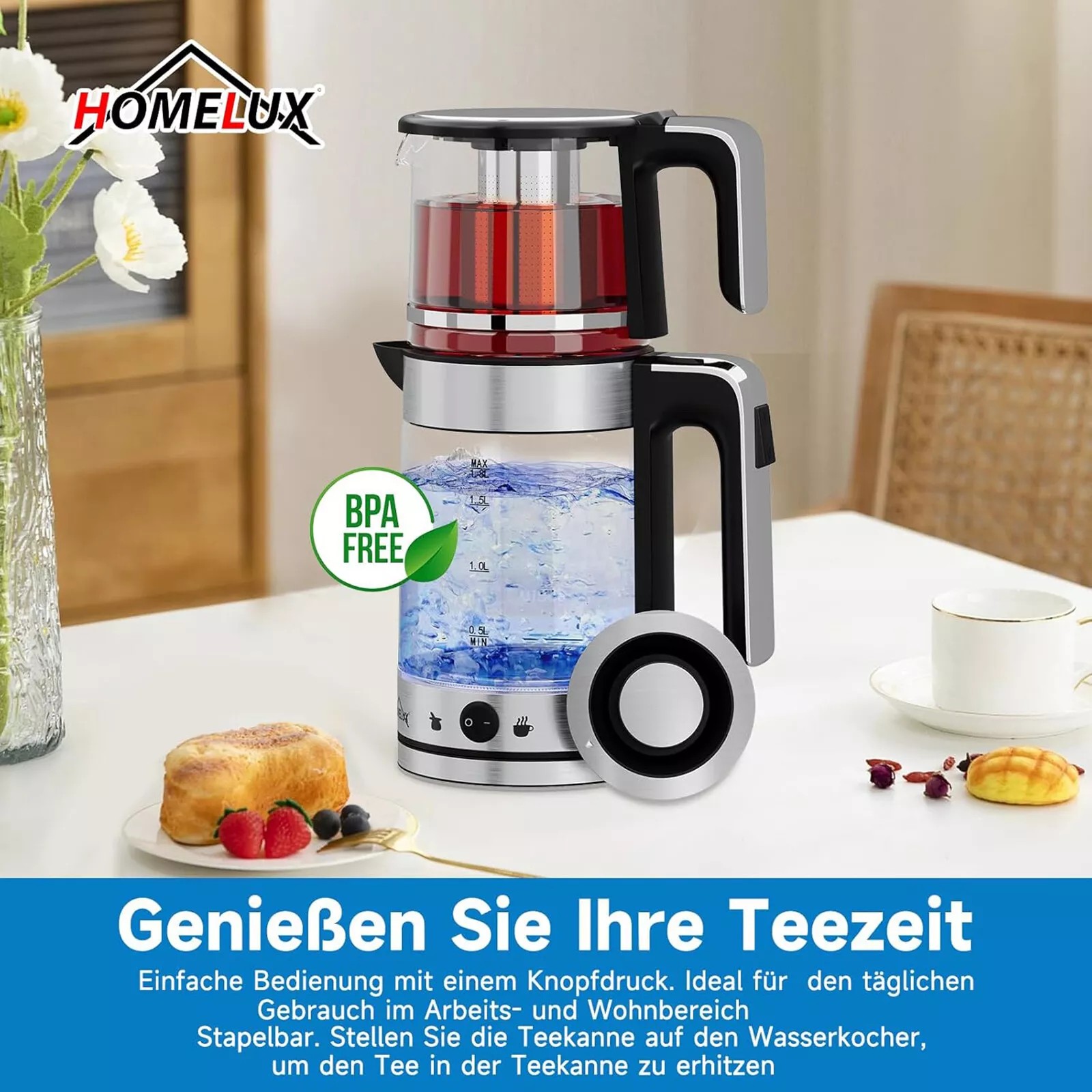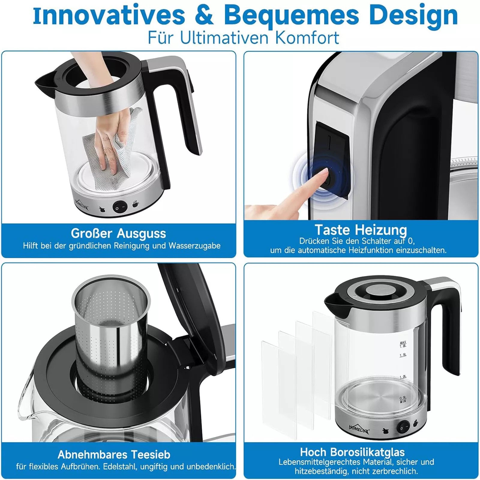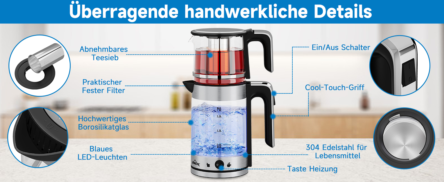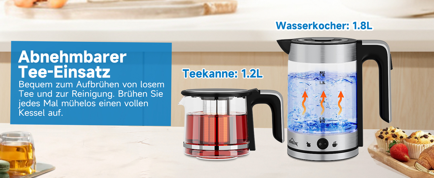 1800 watt tea kettle 1.8 L kettle glass 1.2L teapot with strainer tea maker,ZY-310U