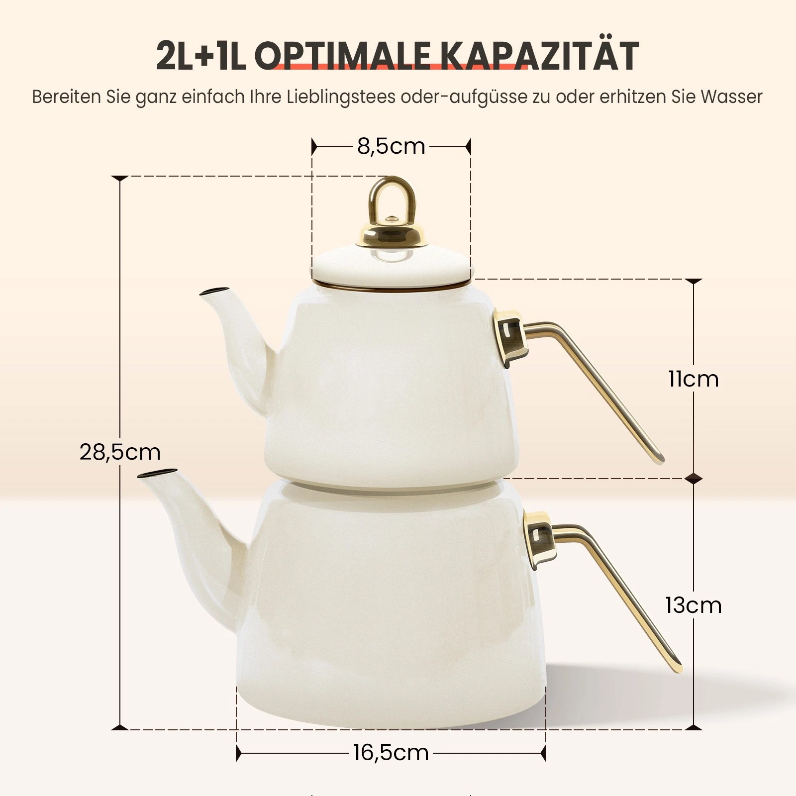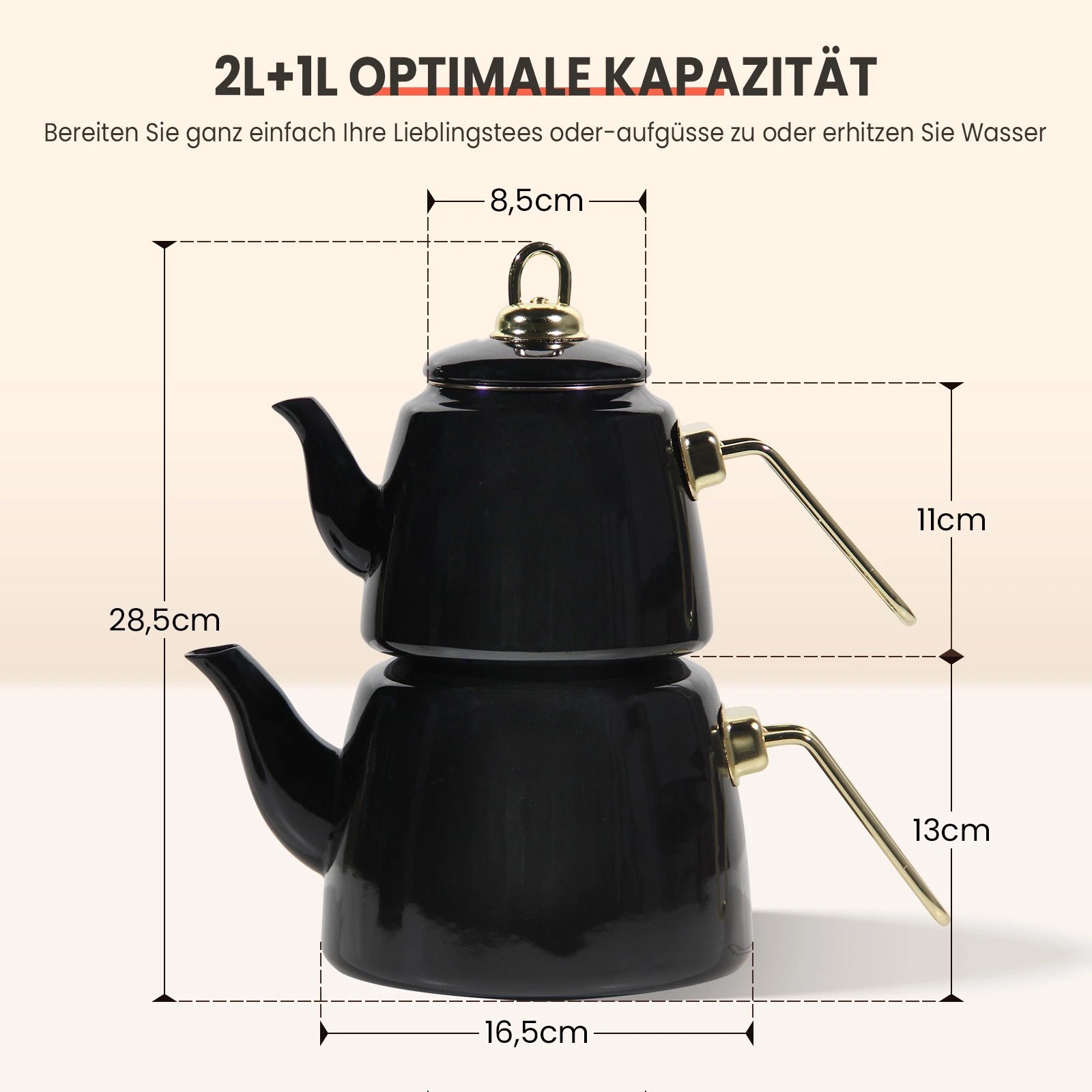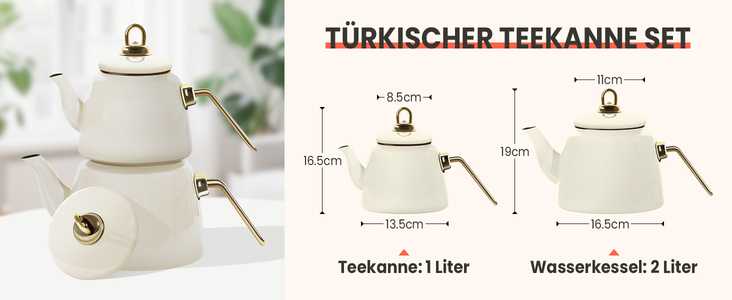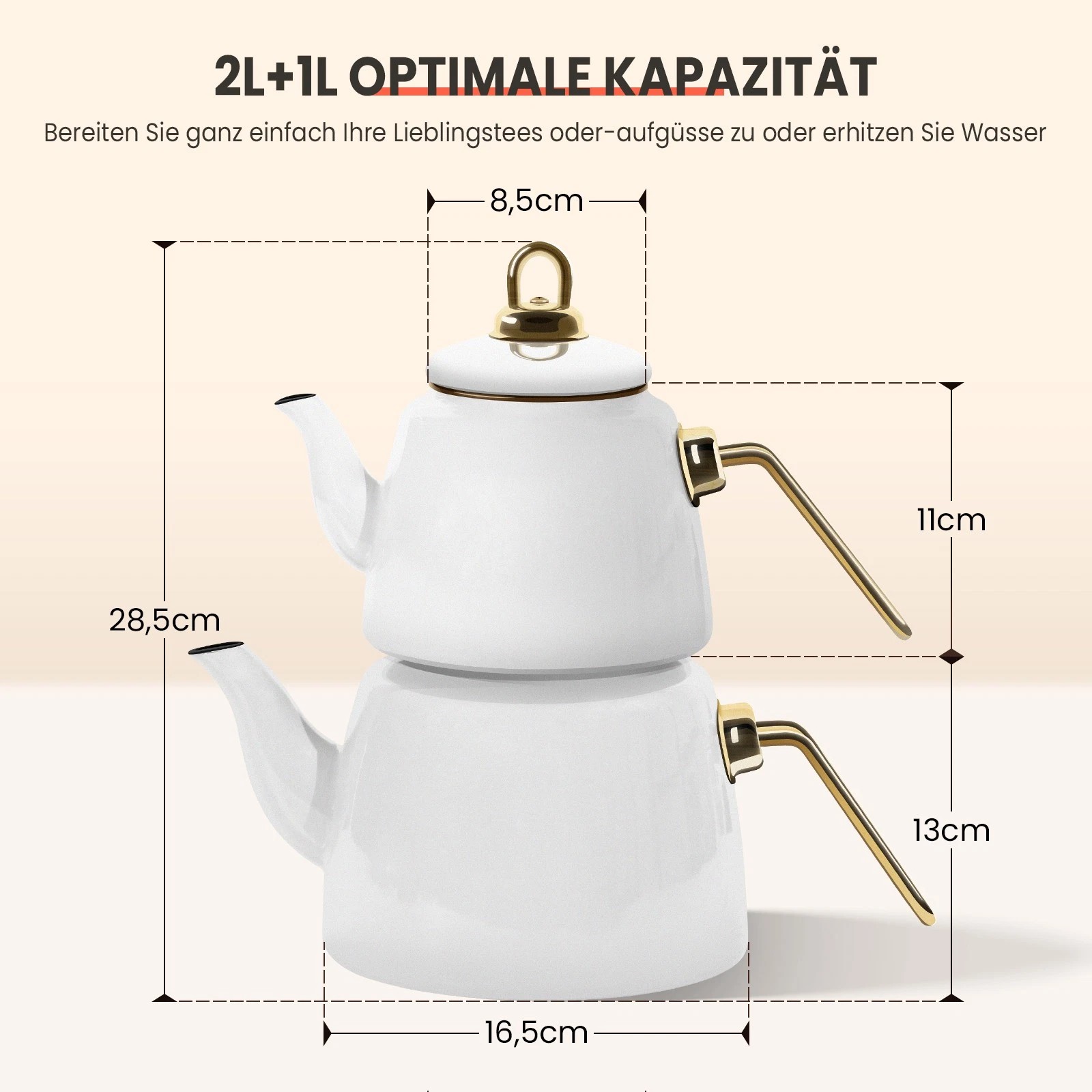 This set includes a 1-liter teapot and a 2-liter tea kettle, providing everything you need to brew your favorite loose leaf tea. The teapot's ergonomic handle and well-designed spout ensure effortless pouring, while the kettle quickly heats the water, allowing you to brew your loose leaf tea or any other type of tea.