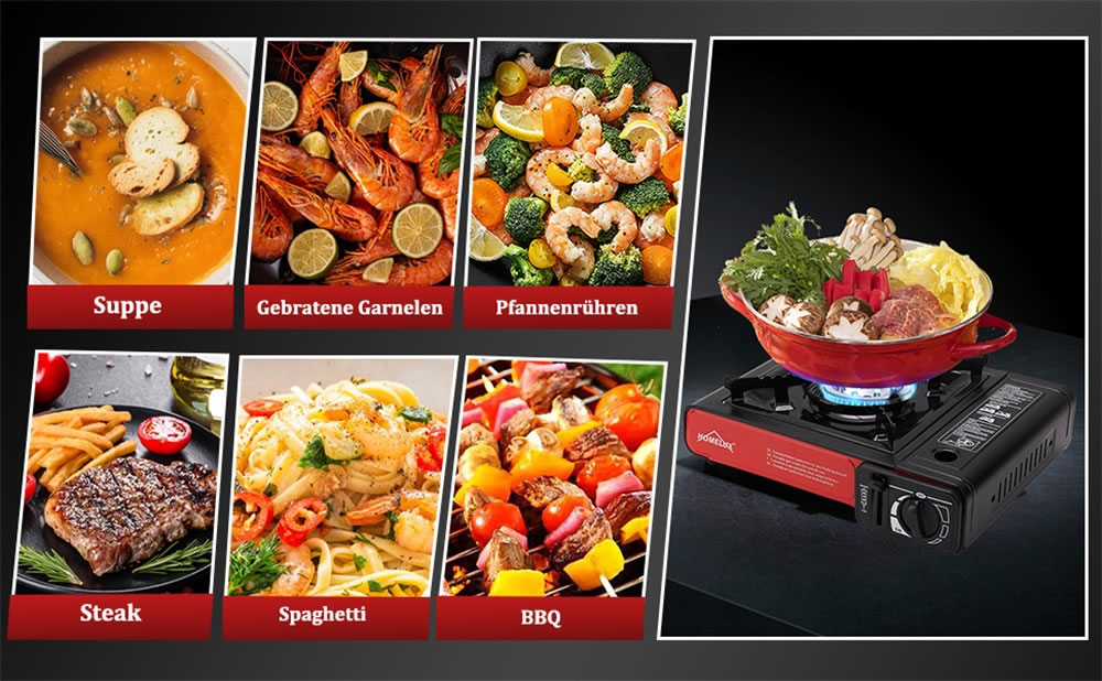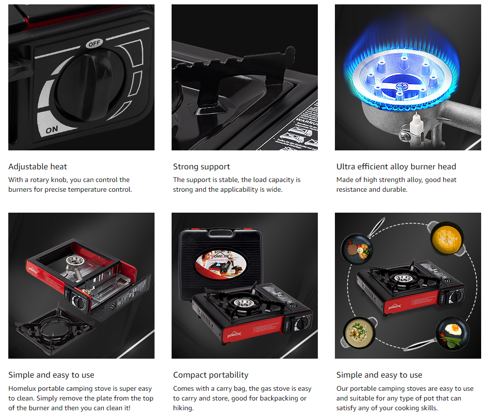 the portable camping stove from Homelux is equipped with a piezoelectric ignition. This makes the oven super easy to start and easily regulate the heating output. No matches or lighters required. You can use a variety of pots with a diameter of less than 26 cm to meet all your cooking needs, so you can do anything you want outdoors.