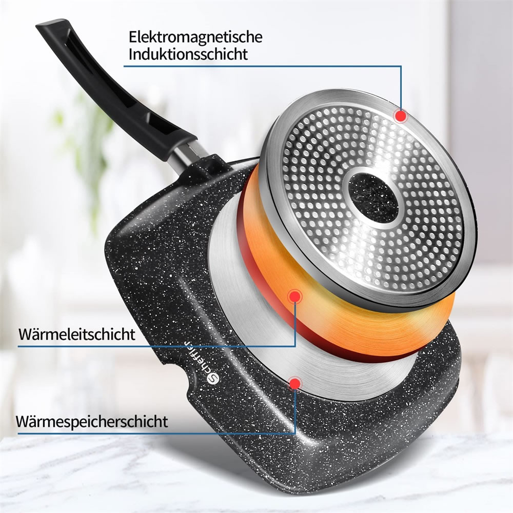 the high-quality Scheffler non-stick coating is safe and healthy, 100% free from APEO and PFOA, which can help you solve the cleaning problem. You only need a soft sponge or cloth to remove oil easily. Or rinse it with water to clean it.