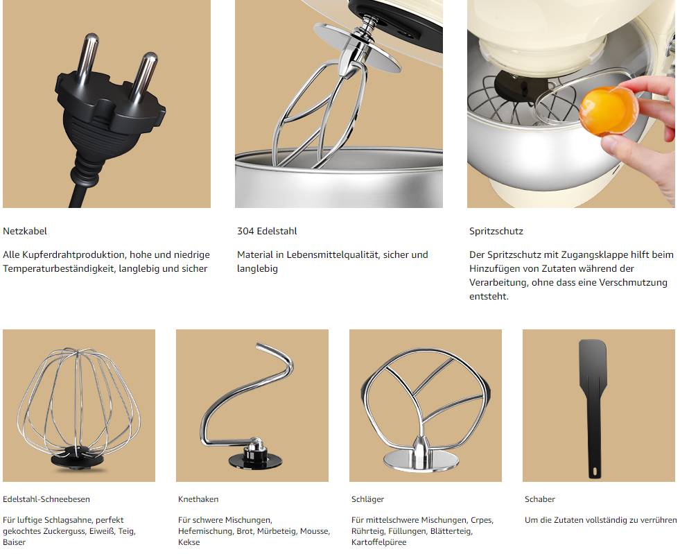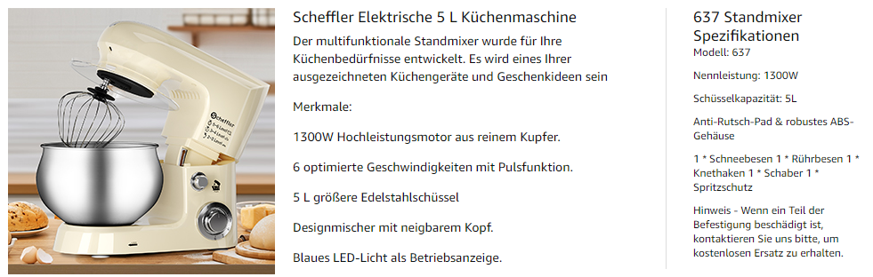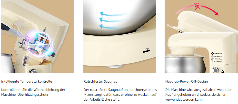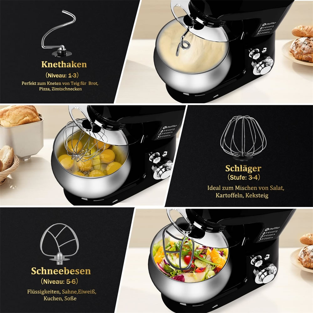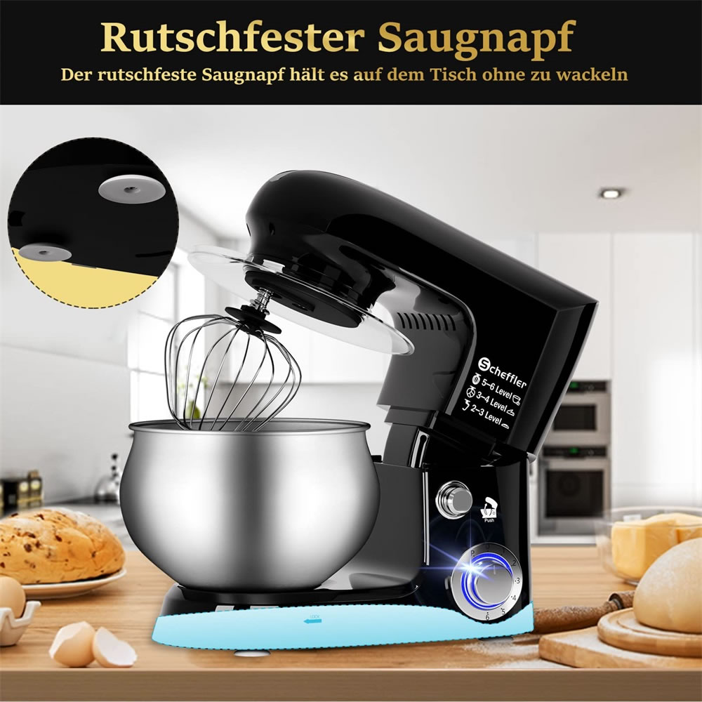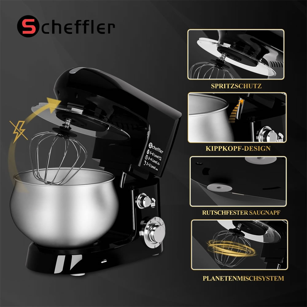 Scheffler 2000 W Food Processor, 5 L Stainless Steel Bowl Kneading Machine with 6 Speed Levels, Dough Machine with Whisk, Dough Hook, Bat and Splash Guard SC 637