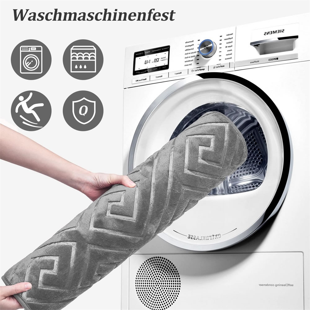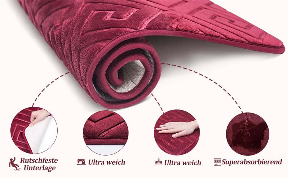 the set consists of 1 x 50 x 60 cm and 60 x 100 cm bath mats. Our bath mats are made from 100% polyester. We use high quality polyester material. The back is backed with a non-slip PVC base. The thick and soft contact surface provides a super comfortable feeling and helps to reduce pressure on your feet. Enjoy the comfort and say goodbye to terrible fibre waste!