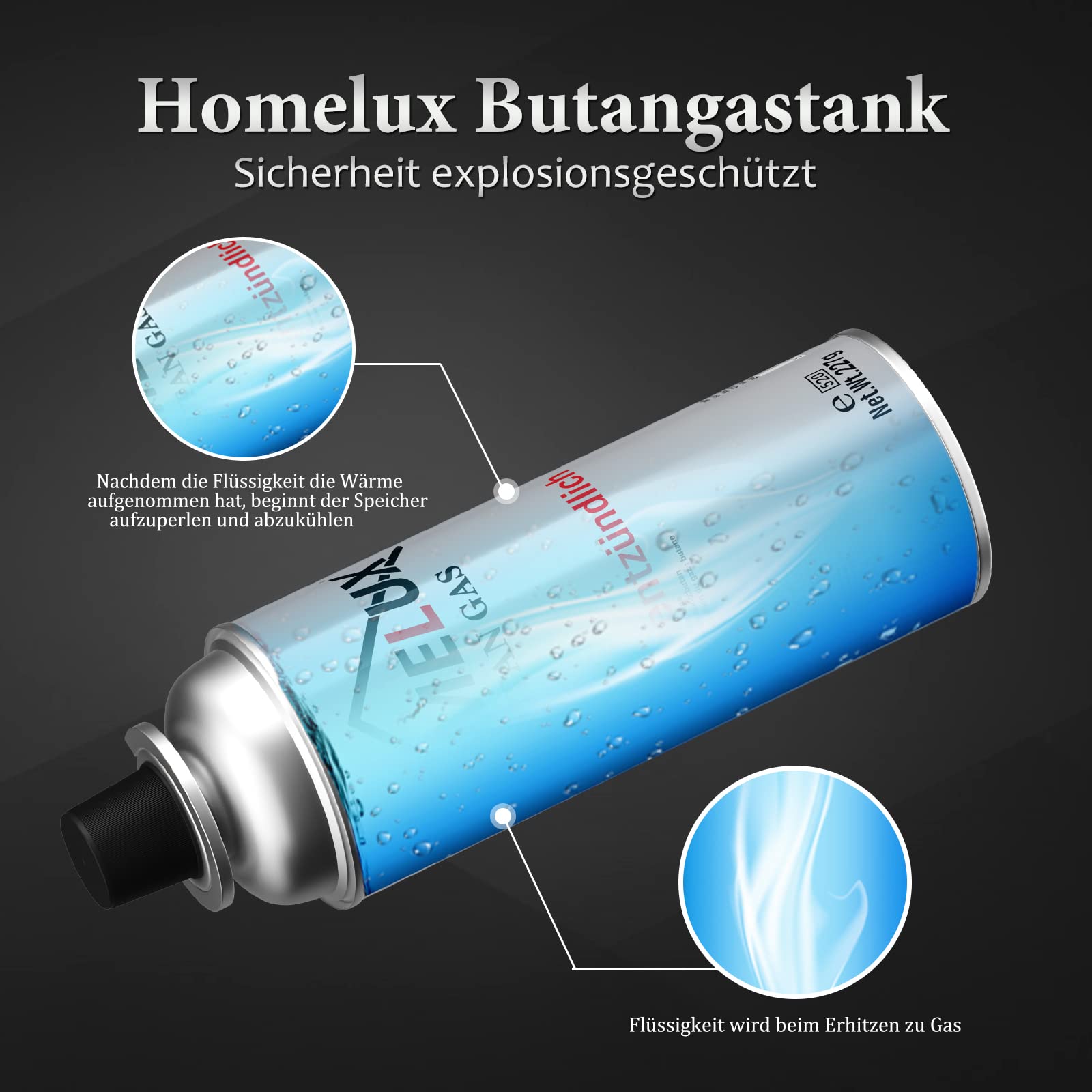 Butane fuel tanks have self-sealing nozzles. Conforms to EN 417 safety standards. This prevents gas leaks if you are not in a butane camping stove. No need to worry about gas leaks. The coil is very efficient and powerful. The gas can not only be ignited quickly and safely, it also burns smokeless and odourless.