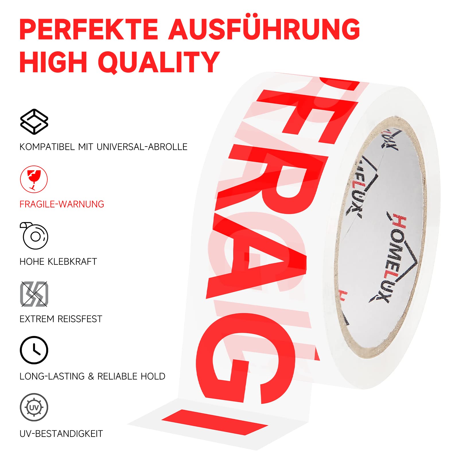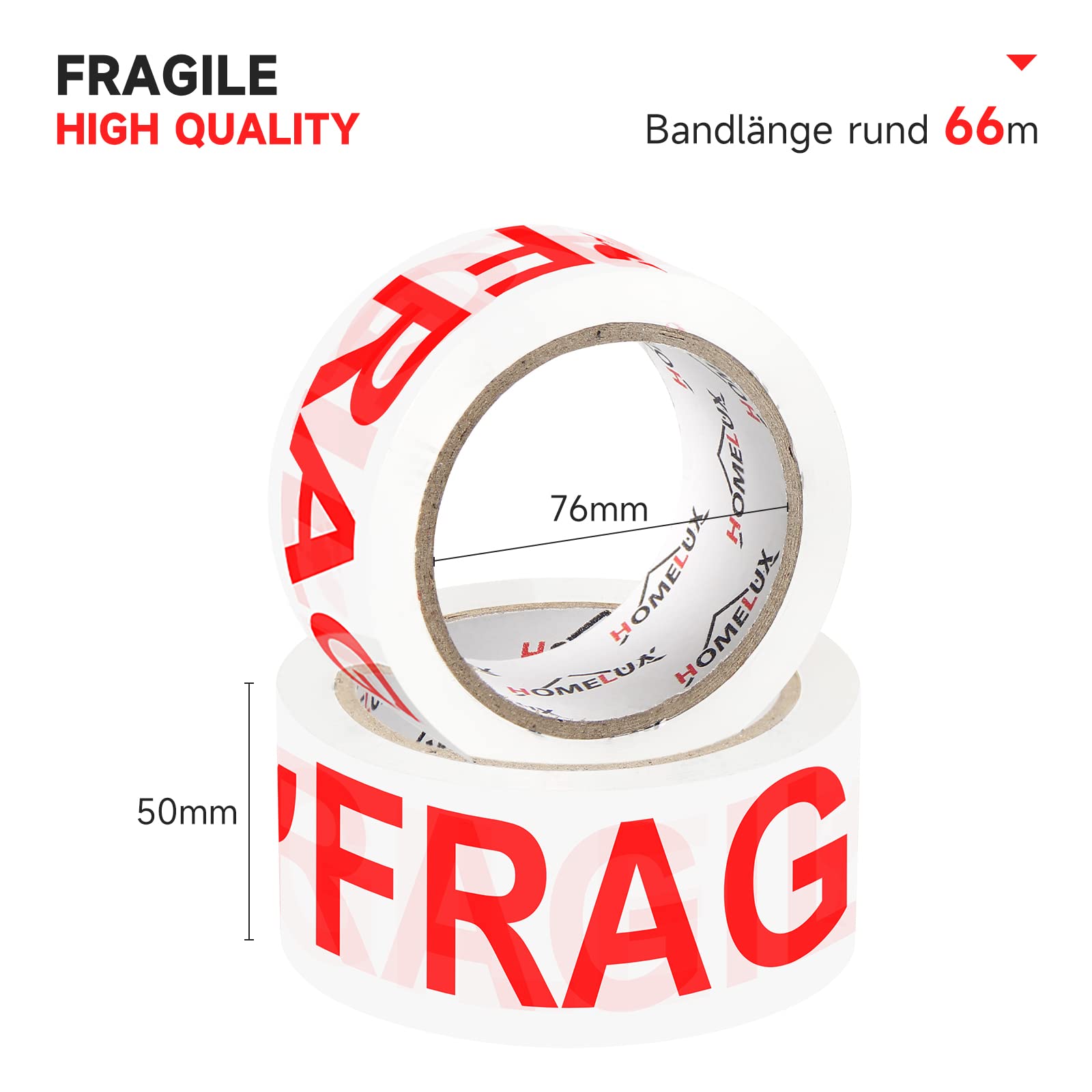 HOMELUX Fragile Printed Adhesive Tape 50 mm x 66 m , Parcel Tape for Fragile and Fragile Glass Package, Parcel Tape Widely Visible, Fragile Packing Tape(9960)